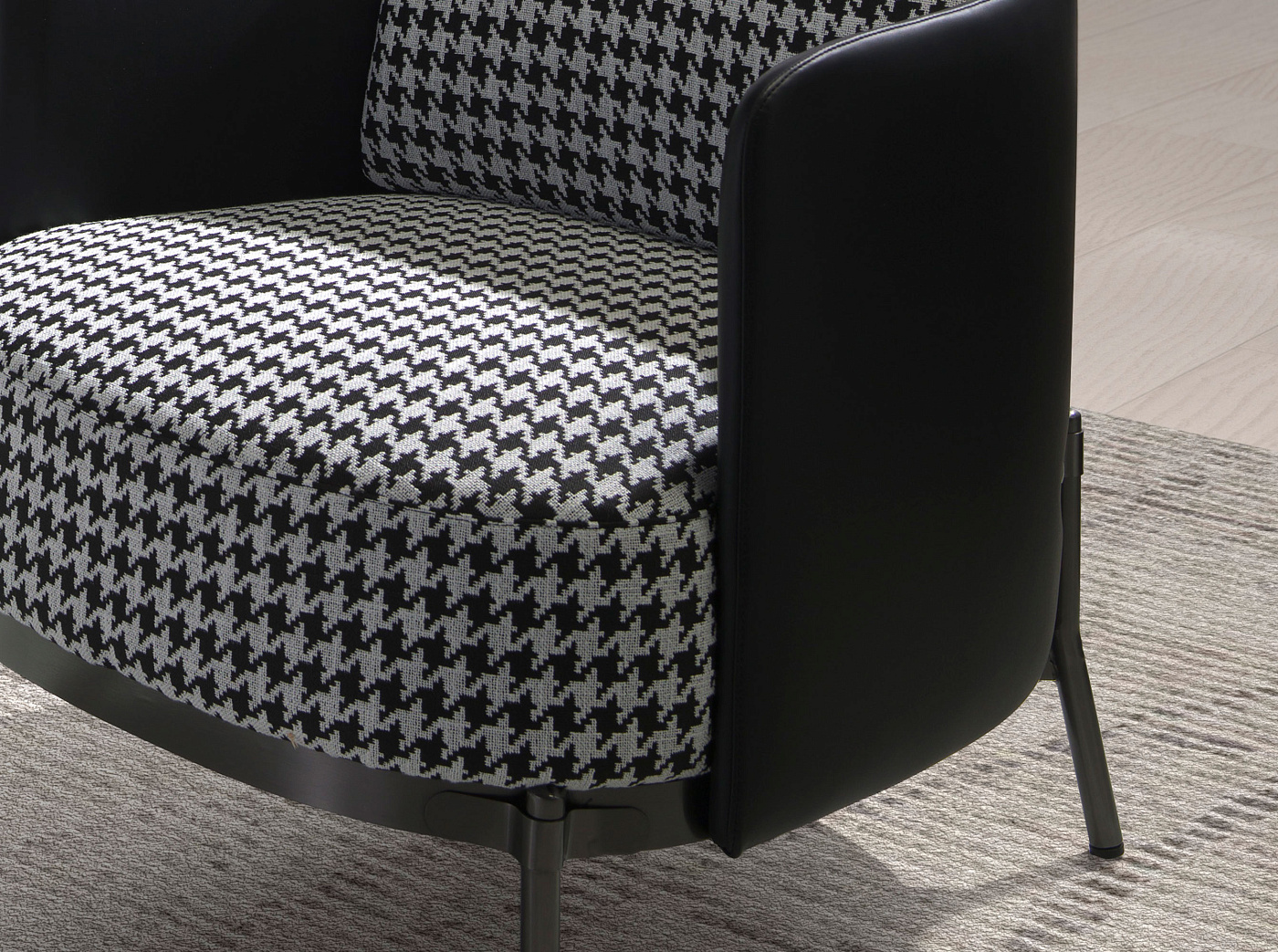 Кресло 5139 из черно-белой ткани и черной экокожи