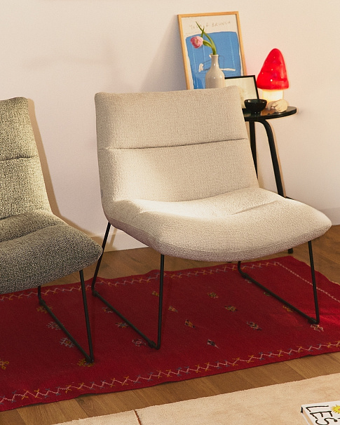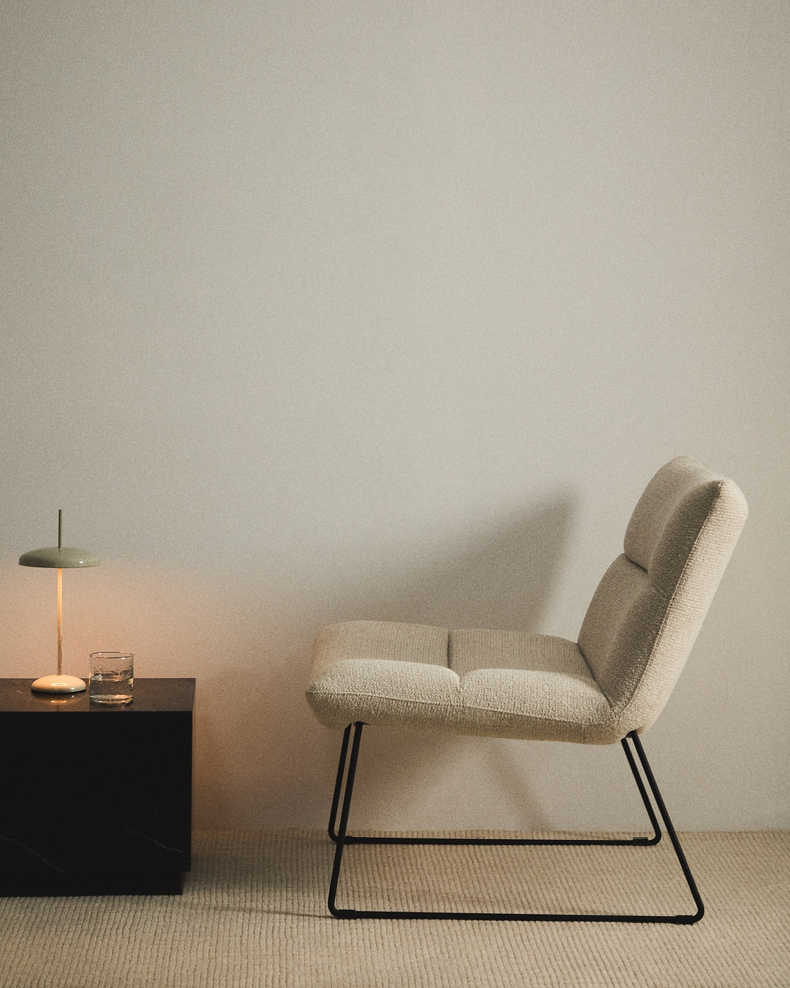 Кресло Asen из бежевого шенилла с черными стальными ножками