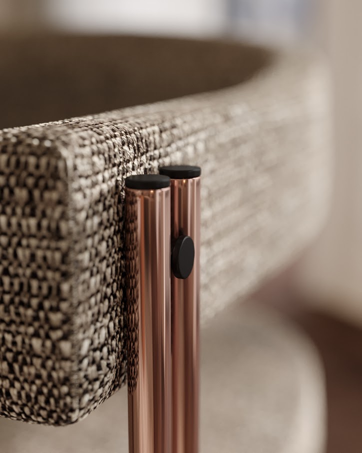 Бамбук, как известно, одно из самых крепких и элегантных деревьев в мире. Поэтому пары трубчатых металлических ножек, соединенных металлическими деталями, удерживающими структуру обивки, вдохновили нас на создание кресла Bamboo, придающего любому разделению комнаты стильный штрих и характер.