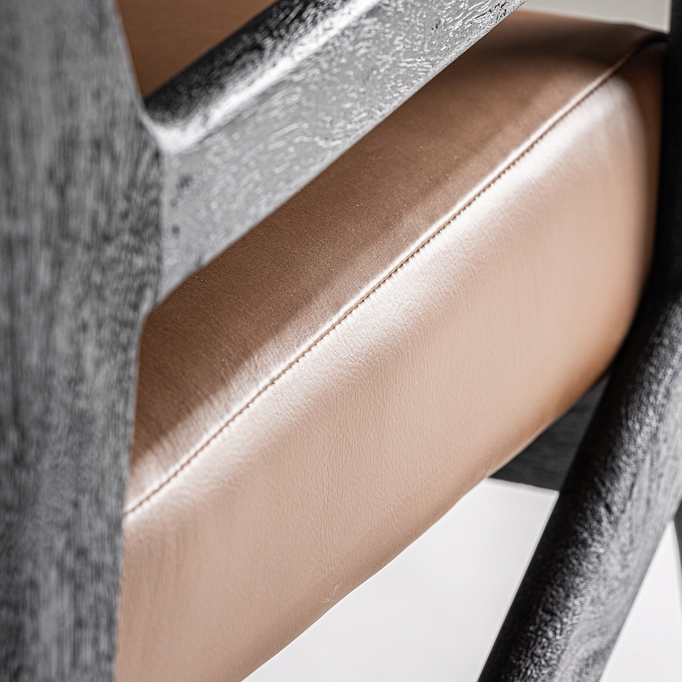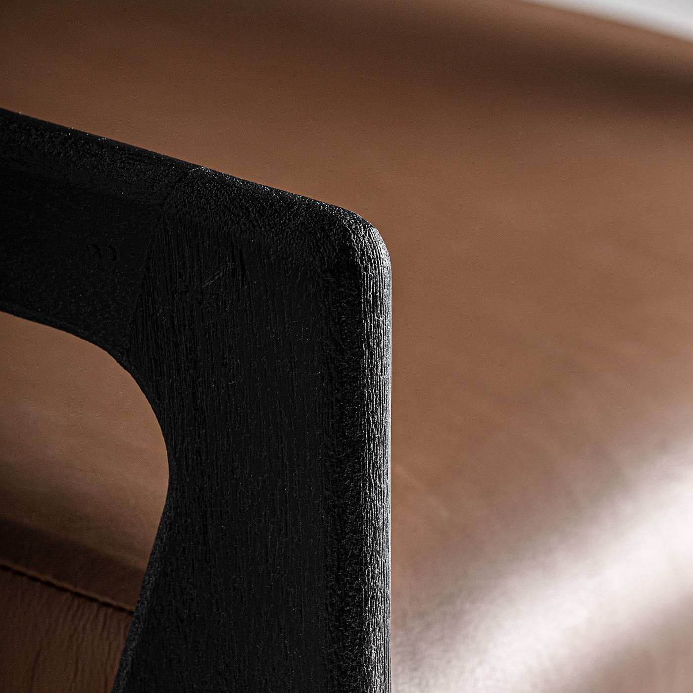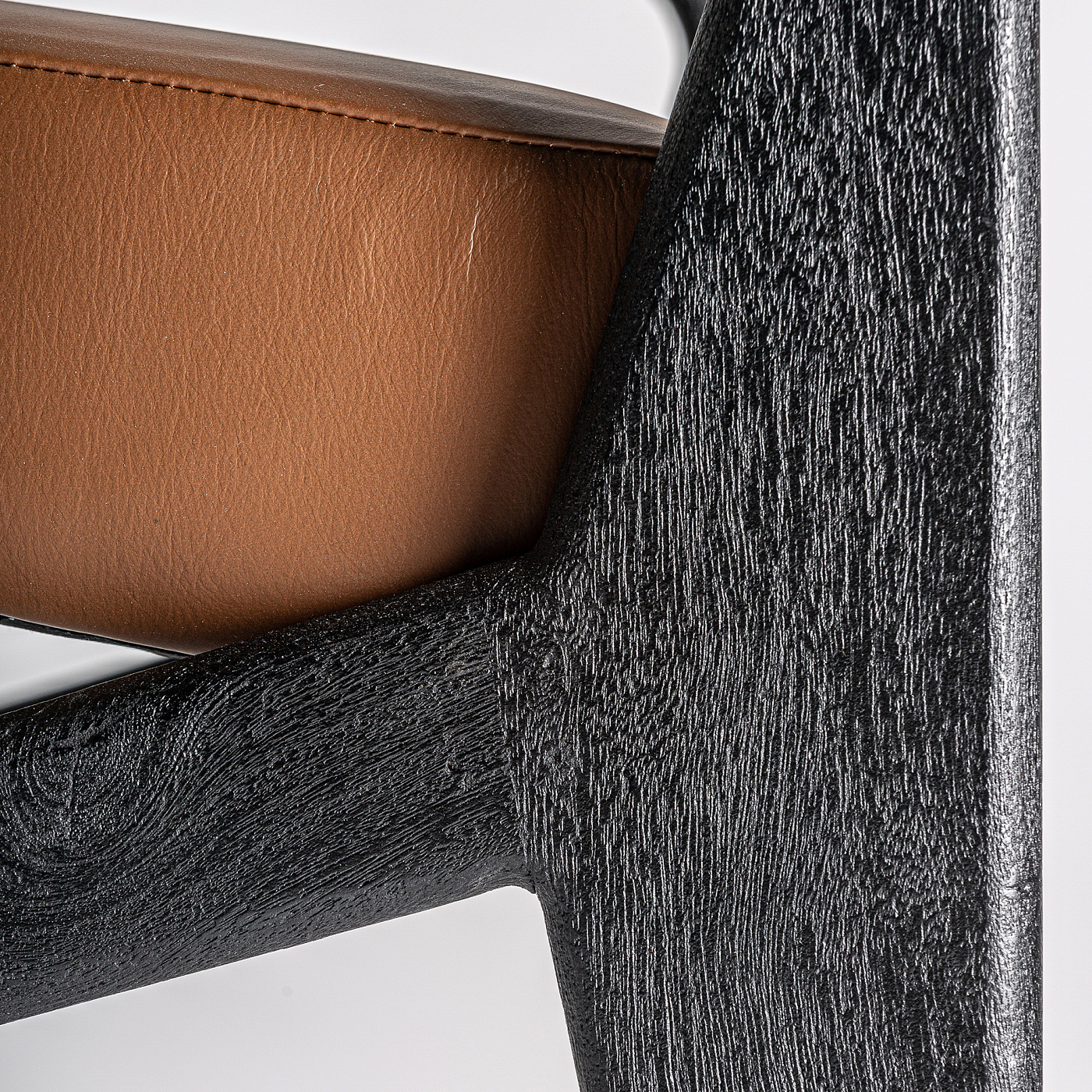 Кресло Beslon в современном стиле, изготовлено из древесины черной акации в сочетании с коричневой кожей.