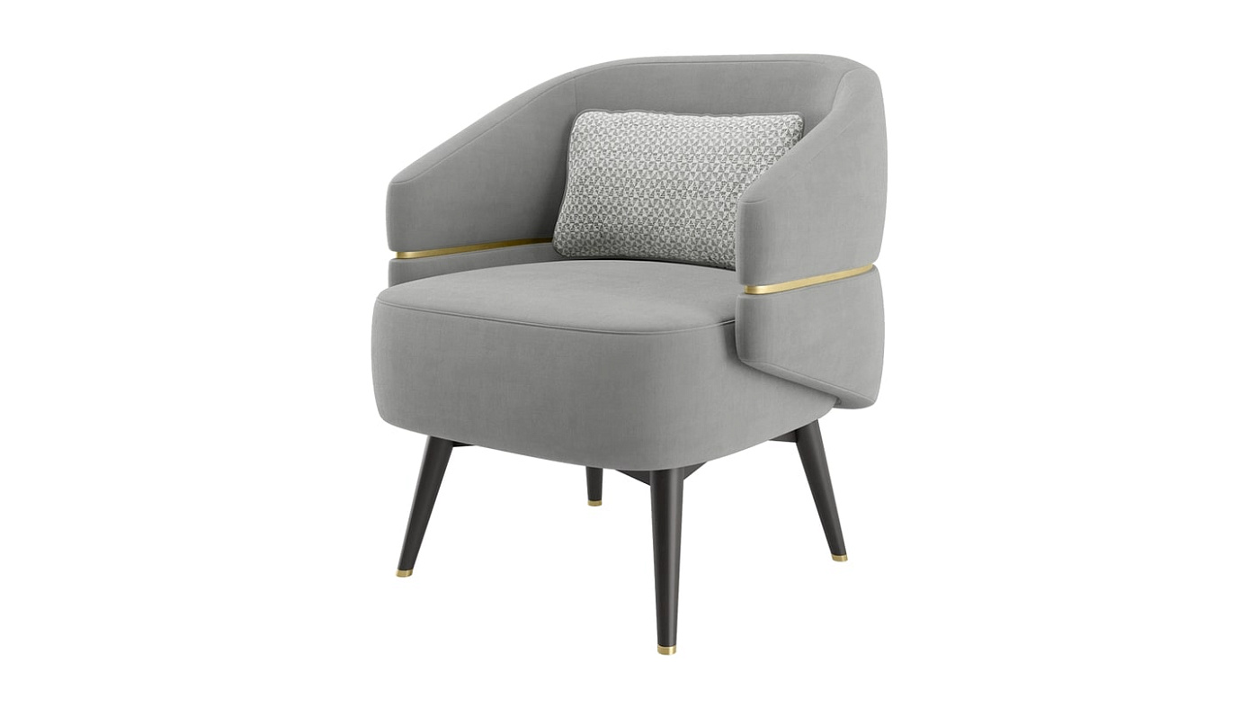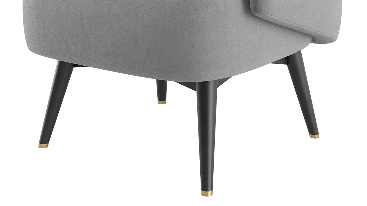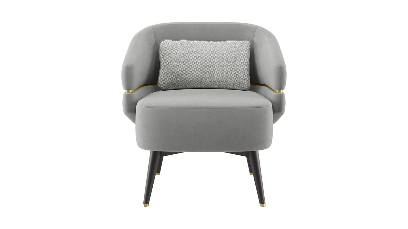 Обитое бархатом кресло CAIRO придает много индивидуальности своему аккуратному дизайну с ножками из матовой латуни и эффектным "поясом", который обвивается вокруг спинки и подлокотников.