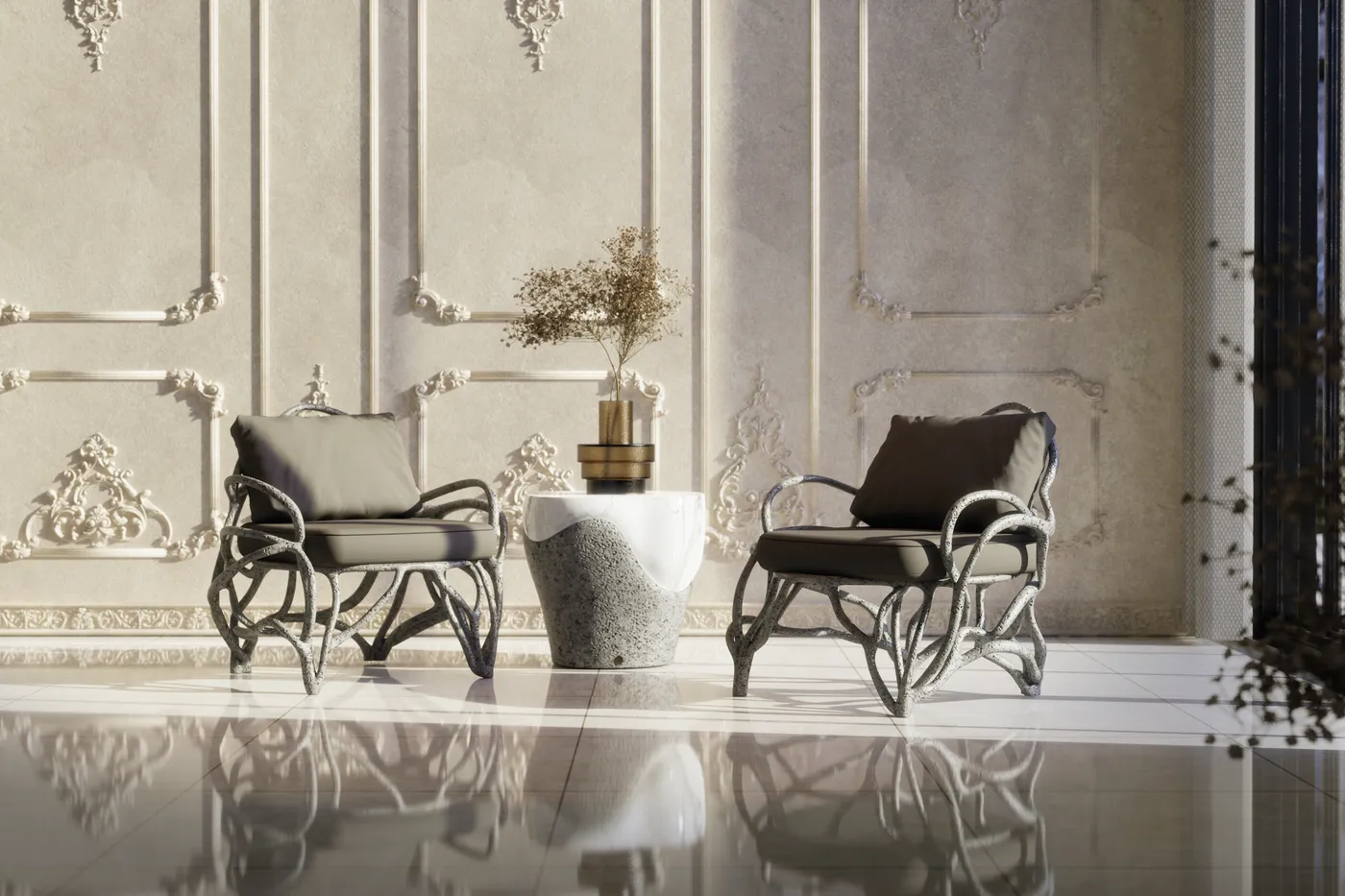 Потрясающее сочетание мастерства и комфорта. Вдохновленные сложными и органическими структурами корней, эти изделия отличаются уникальным дизайном, который добавляет нотку естественной элегантности любому пространству. Отделка цвета бетона усиливает эстетику земли, создавая гармоничное сочетание современных и деревенских элементов. Благодаря мягким сиденьям диван и кресло Eros предлагают роскошное и привлекательное место для отдыха и расслабления. Эти изделия можно изготавливать по индивидуальному заказу в разных размерах, что позволяет использовать универсальные варианты сидений, которые подходят для различных конфигураций сидений. Независимо от того, нужно ли вам уютное место для троих или просторная зона отдыха для большой группы, диван и кресло Eros разработаны для удовлетворения ваших потребностей, добавляя при этом отличительный штрих вашему жилому пространству.