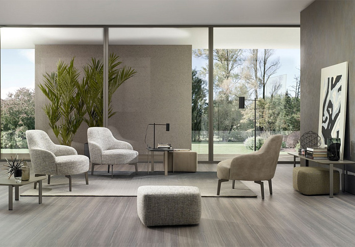 Hermann — кресло с плавными округлыми формами и простыми изогнутыми линиями. Он представляет собой образ гладкости, смешанной с прямым, элегантным и удобным дизайном. Стилизованные тонкие ножки выступают и прочно соединяют изогнутый корпус с полом. Кресло с очень характерным внешним видом можно разместить в любом помещении, будь то дома или на работе. Коллекция включает в себя кресла с разной высотой спинки и пуф, с которым можно комбинировать.