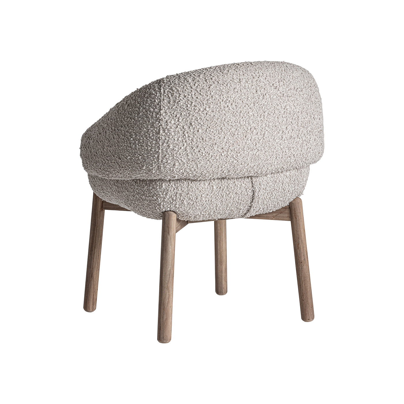 Jacquard стул, изготовленный из древесины коричневого дуба в сочетании с серым полиэстером.