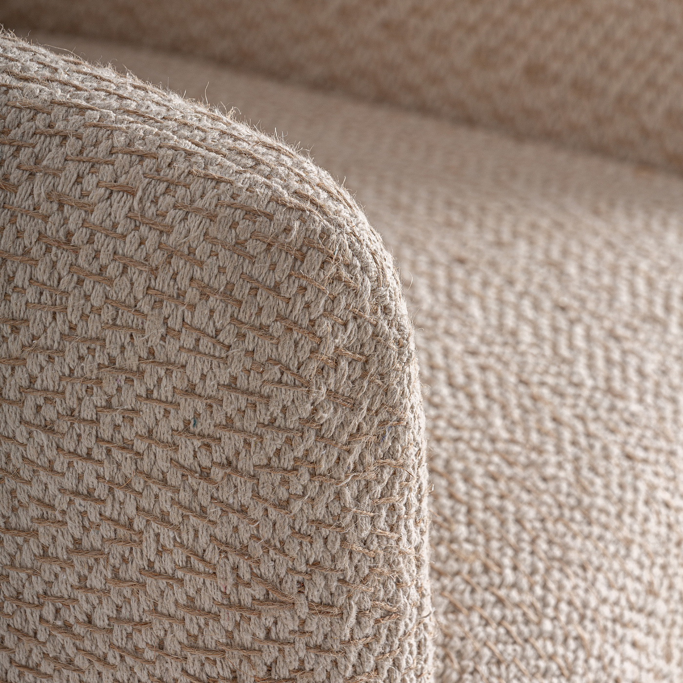 Кресло Liermo в современном стиле, изготовлено из джута бежевого цвета в сочетании с коричневым манговым деревом. Ширина: 76 см, Глубина: 79 см, Высота: 73 см