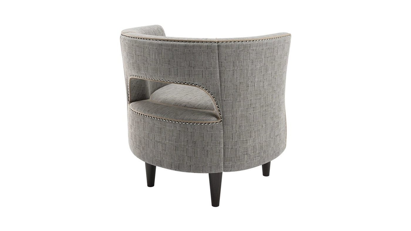 Кресло LILLE, обладающее характерным сиденьем, привносит много индивидуальности в свою компактную форму. Фирменные детали включают в себя спинку с отверстием, ножки из цельного дерева, которые плавно сужаются, тонкие детали окантовки и ряды равноудаленных металлических заклепок сзади.