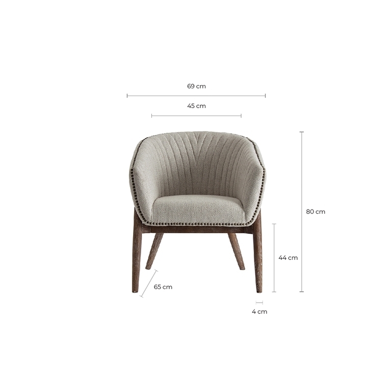 Кресло neive, серый цвет, винтажный стиль. Изготовлен из ели в сочетании с полиэстером и пеной.