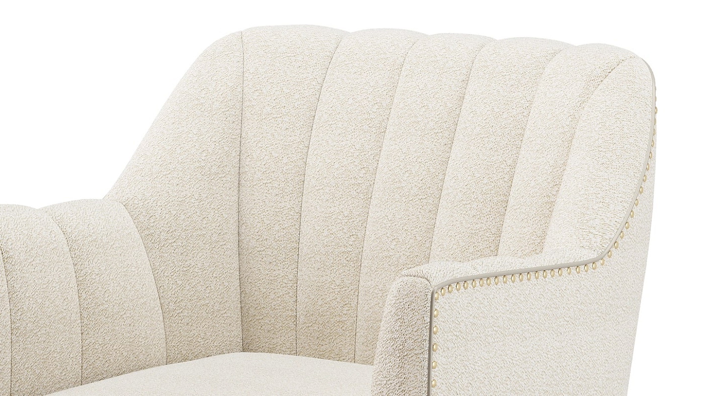 Изящная палитра кресел VERDI с урезанной спинкой демонстрирует красоту всего трех роскошных материалов для создания впечатляющего эффекта: сиденье и ножки обтянуты плюшевым бархатом, окантовка выполнена из гладкого атласа, а блестящая матовая латунь подчеркивает шов и плавную линию заклепок.