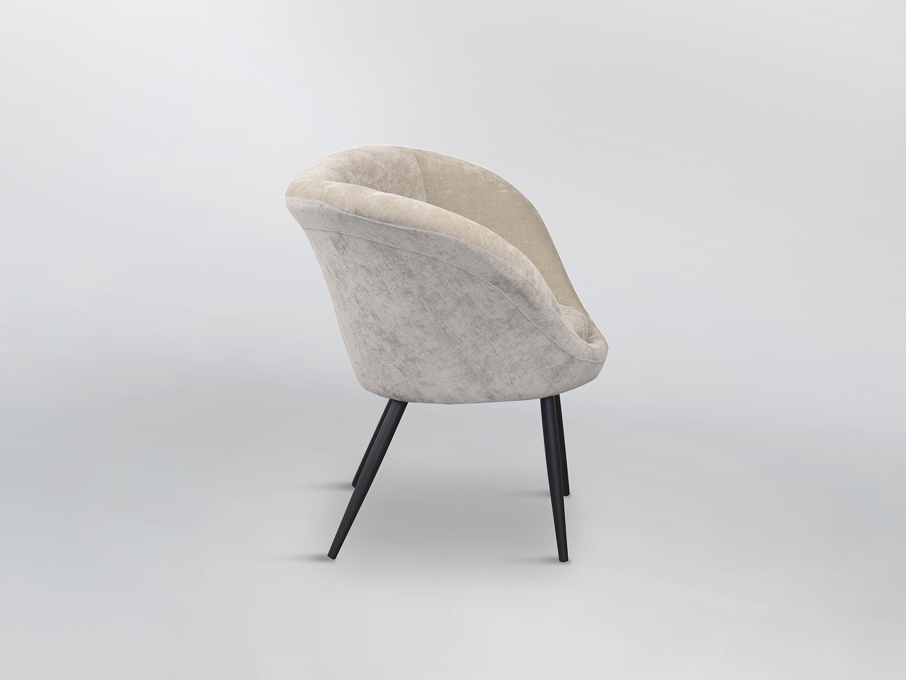 Кресло на металлических ножках, черная отделка и обивка из бежевой синели, 100 % полиэстер.