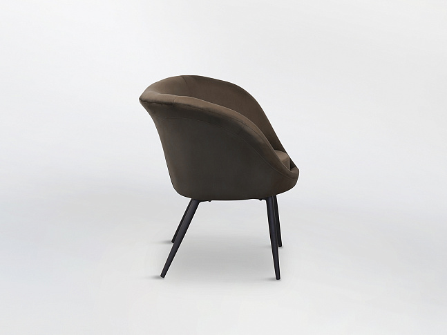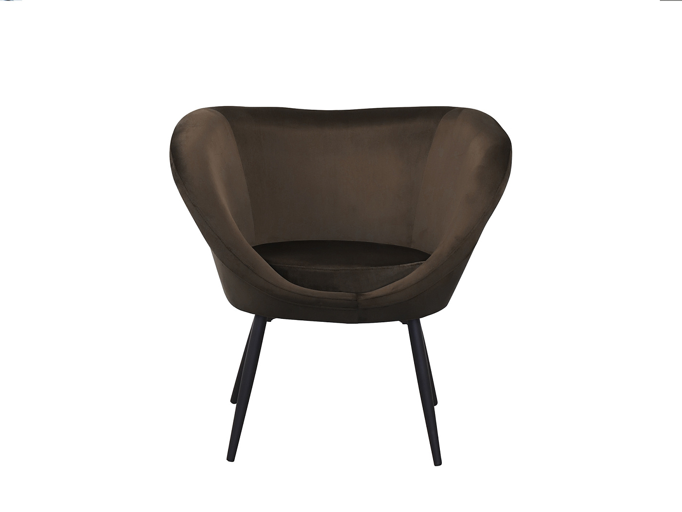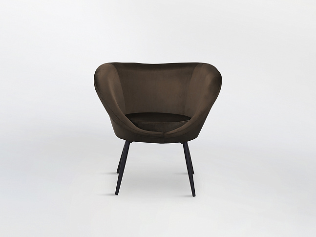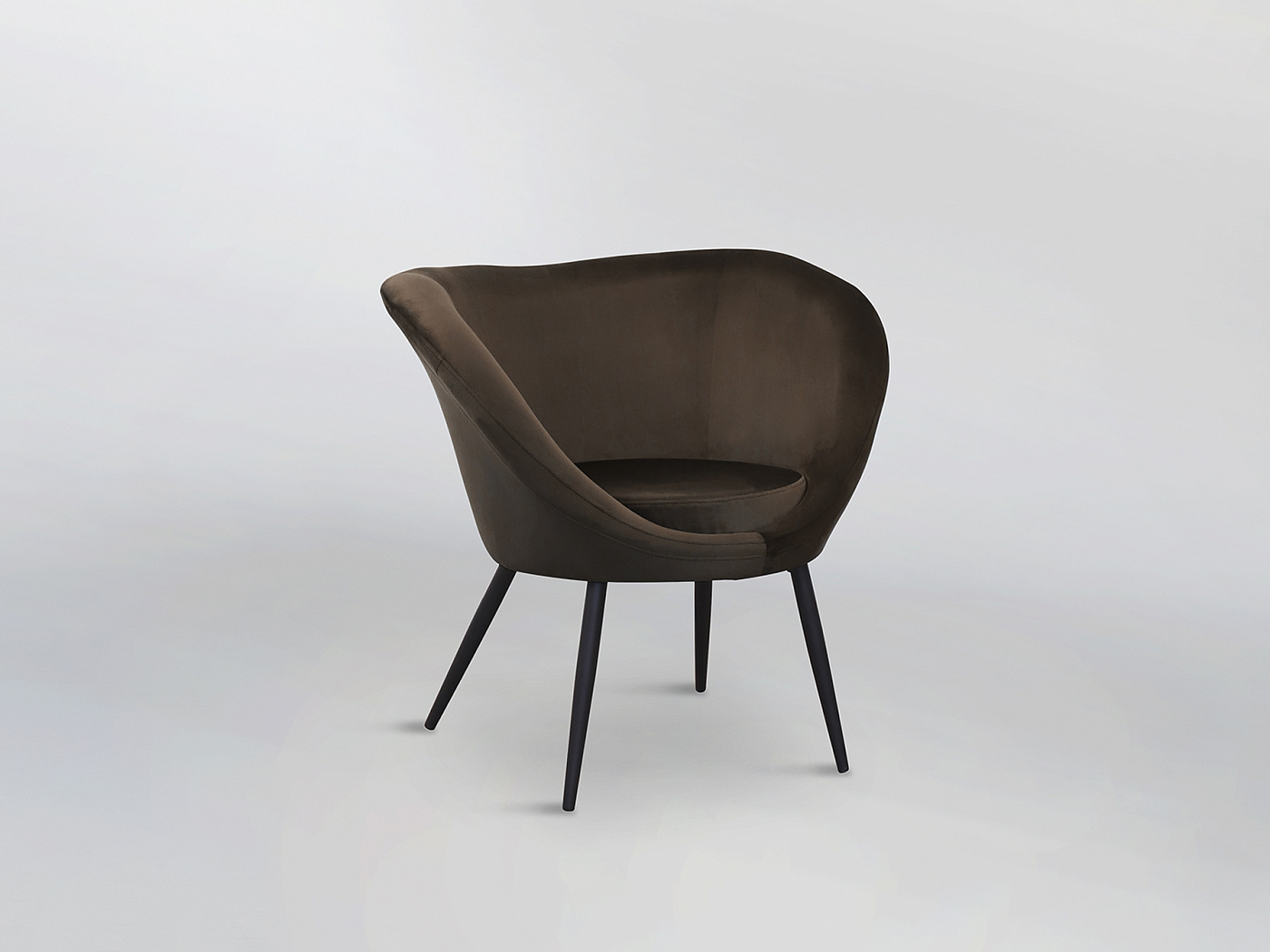 Кресло на металлических ножках, черная отделка, обивка из коричневого бархата, 100% полиэстер.