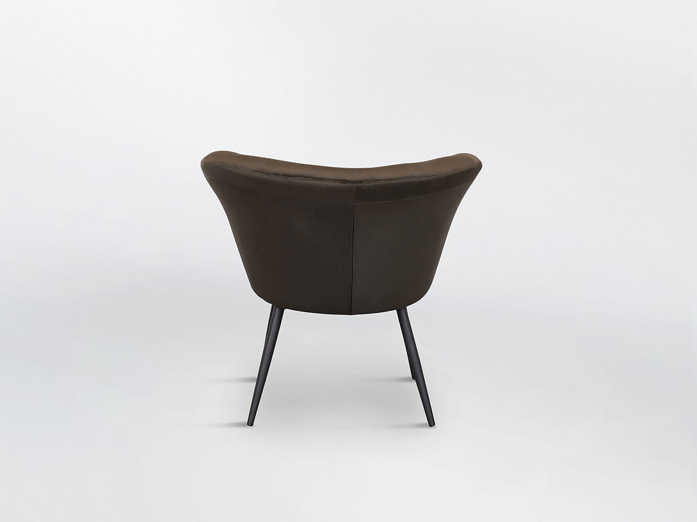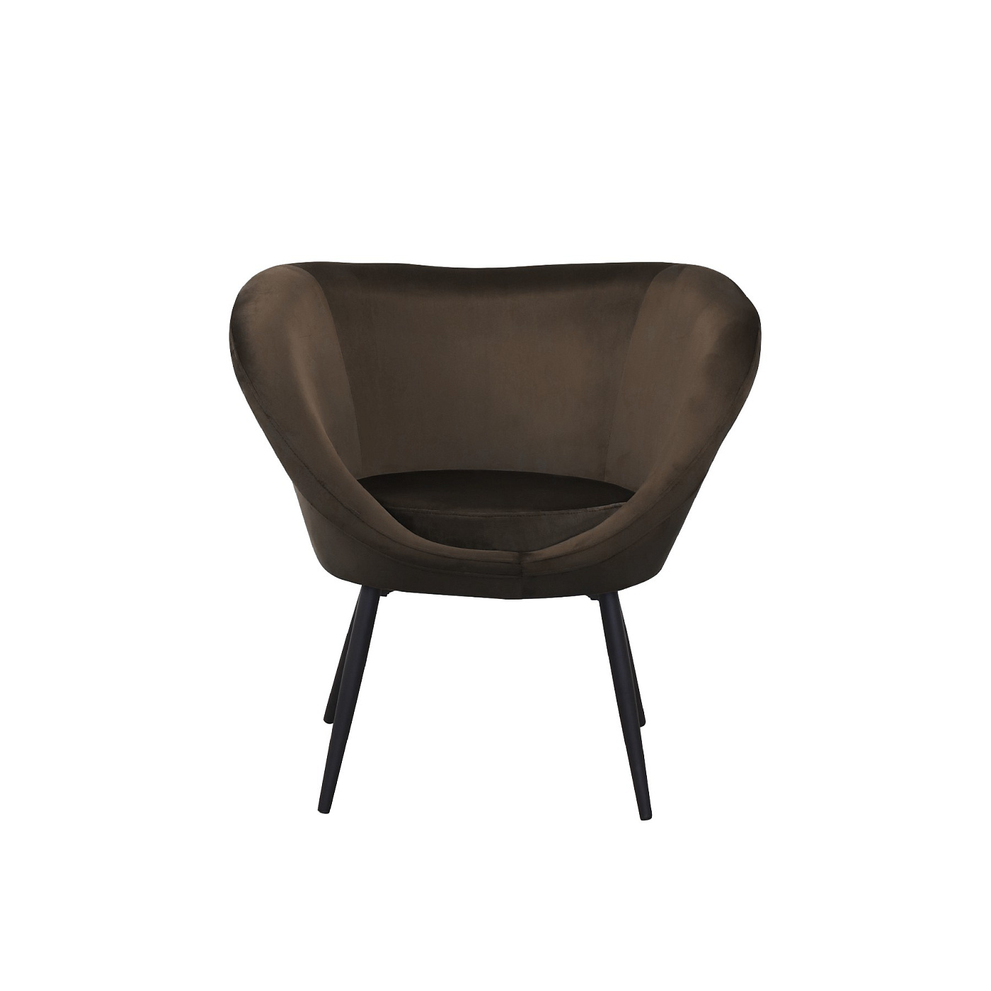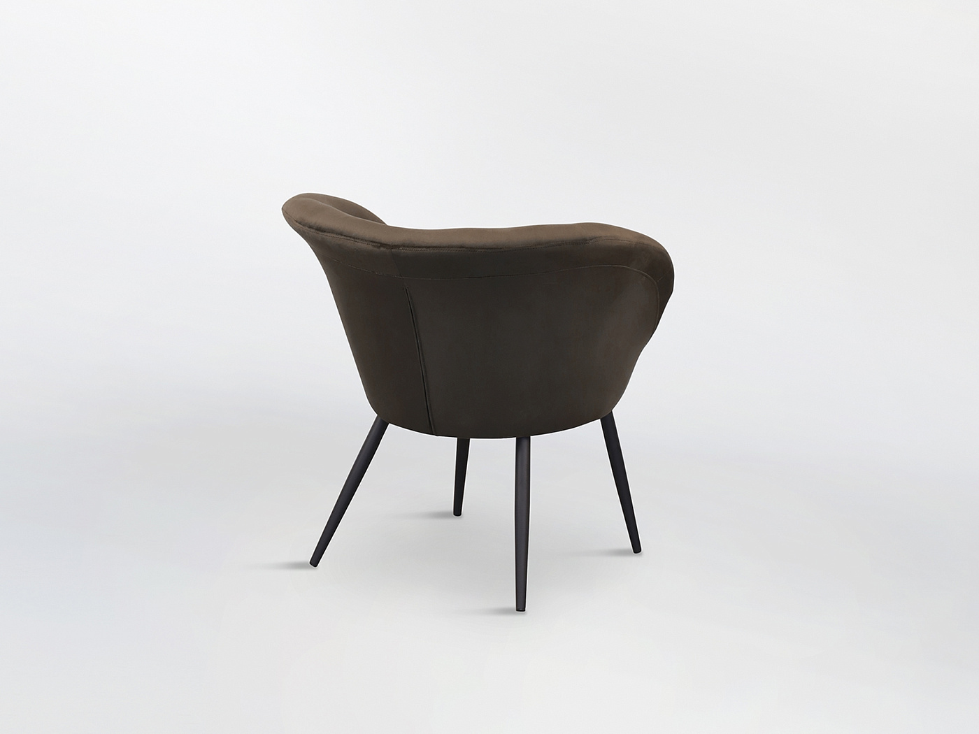 Кресло на металлических ножках, черная отделка, обивка из коричневого бархата, 100% полиэстер.