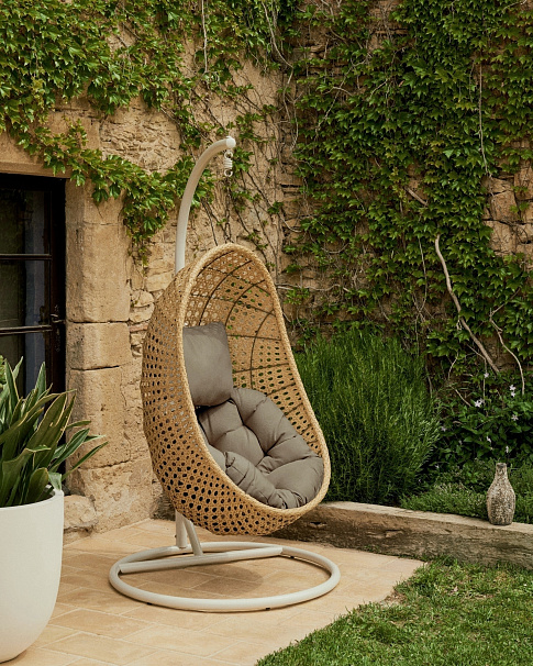 Cira Светло-серое подвесное кресло с натуральной отделкой