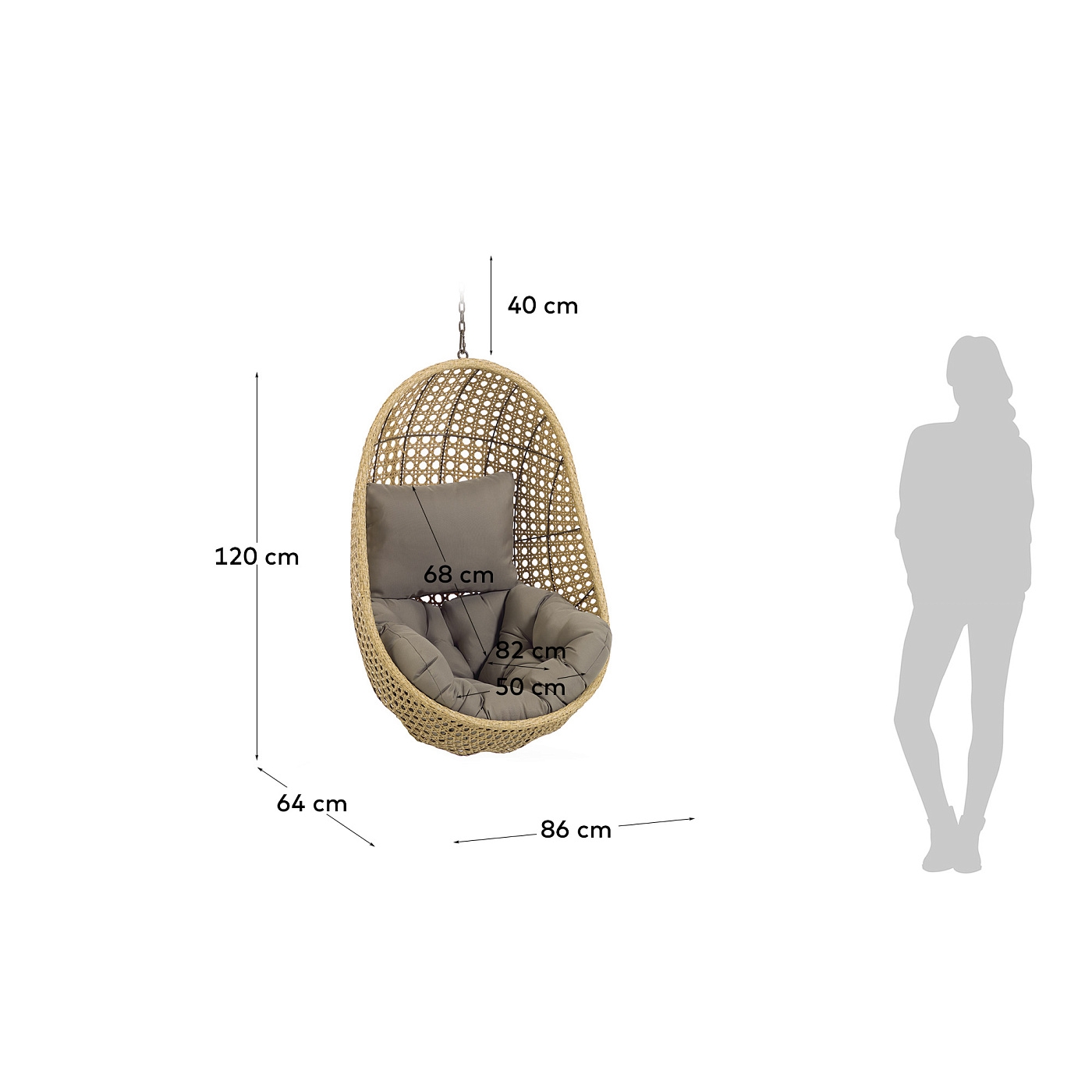 Подвесное кресло Cira с натуральной отделкой