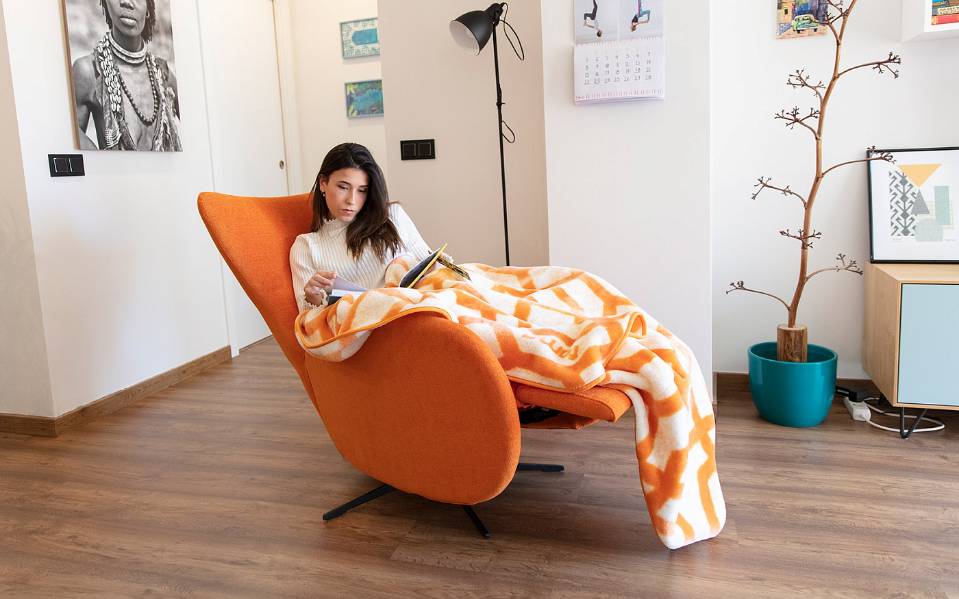 Креслу Mondrian суждено стать новым символическим произведением Fama. Нашей целью было создать очень легкое кресло, но при этом эргономично адаптирующееся к формам тела. Самое главное, что он предлагает большой комфорт и, прежде всего, в закрытом состоянии он настолько легкий, что никто не скажет, что он расслабляет. Механизм открывания можно выбрать с электроприводом или вручную. Он предлагает два положения: первое, немного более вертикальное, для просмотра телевизора, чтения и т. д., а второе — полностью лежа, с ногами выше уровня сердца, что благоприятствует положению, здоровому для сердца. Самое главное, что он предлагает большой комфорт и, прежде всего, в закрытом состоянии он настолько легкий, что никто не скажет, что он расслабляет. Сейчас мы работаем над разработкой моторизованной версии