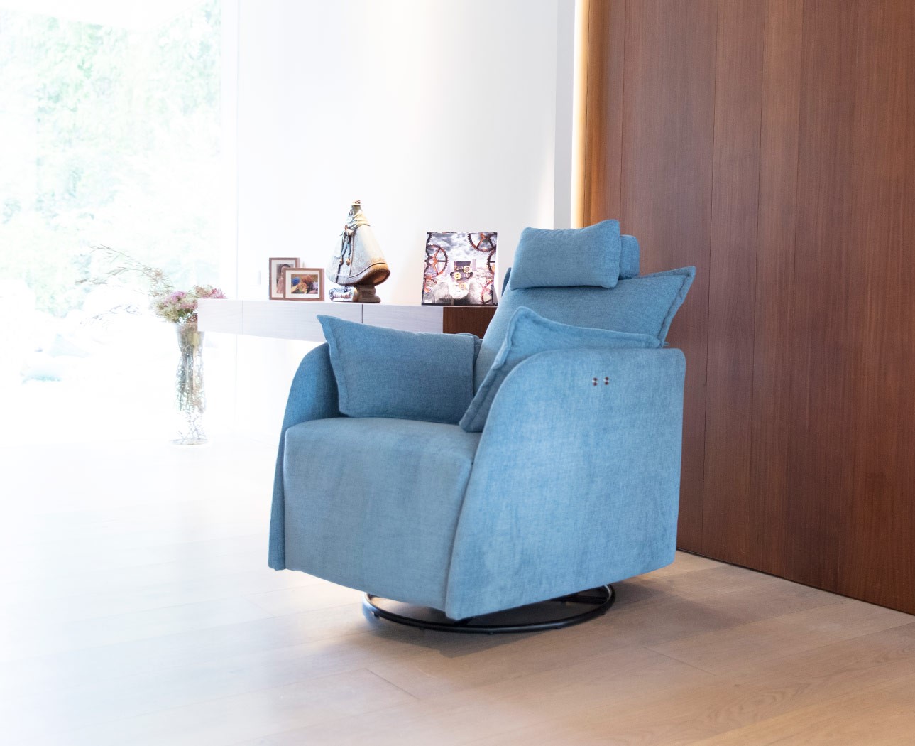 Nadia - это новое кресло-качалка и электрическое кресло. Его эксклюзивный дизайн можно комбинировать с любой другой моделью, особенно с моделью Nadine. Поставляется с регулируемым по высоте подголовником. Механизм кресла такой же, как и в Moonrise, но эта модель на 15 см уже.