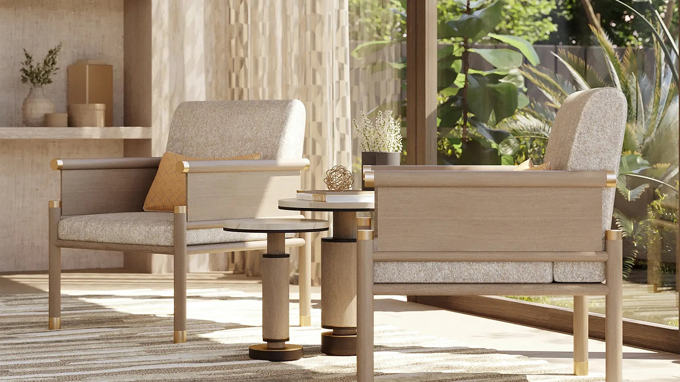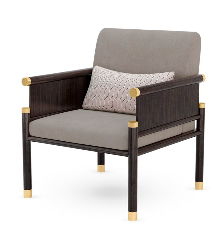 Изысканный дизайн кресла ANAFI повторяет утилитарный силуэт кресла safari и переосмысливает его для современных интерьеров. Удобные подушки сиденья и спинки удерживаются на каркасе из цельного дерева, который приподнят роскошными металлическими деталями.