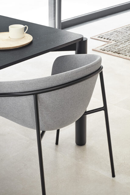 Кресло характеризуется тем, как металлическая конструкция прилегает к мягкому корпусу. Его цельный корпус просторный и удобный, что делает его идеальным для удлинения обеденных столов или ужинов с друзьями.