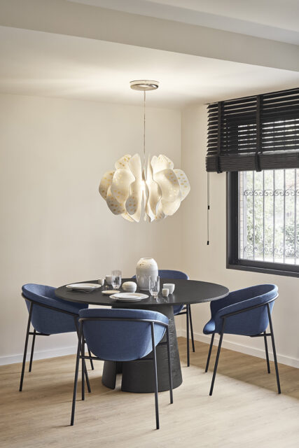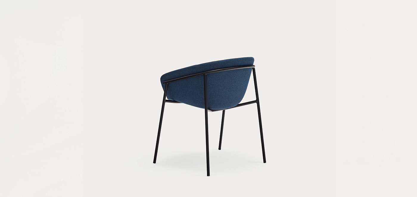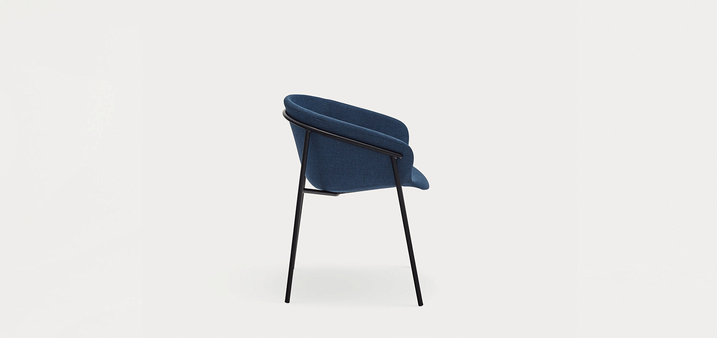 Кресло характеризуется тем, как металлическая конструкция прилегает к мягкому корпусу. Его цельный корпус просторный и удобный, что делает его идеальным для удлинения обеденных столов или ужинов с друзьями.