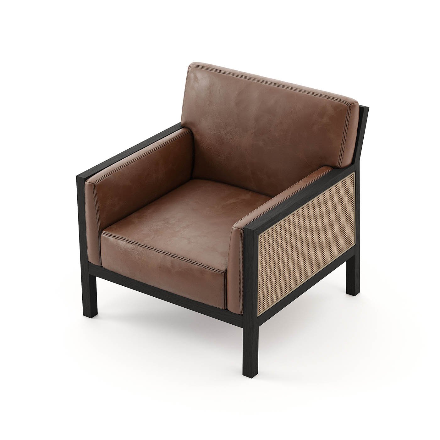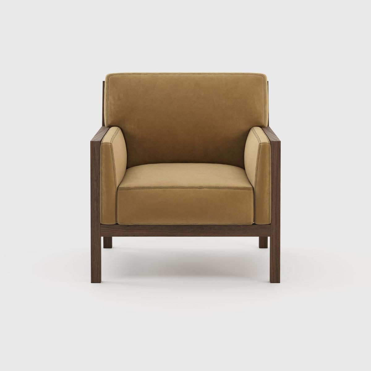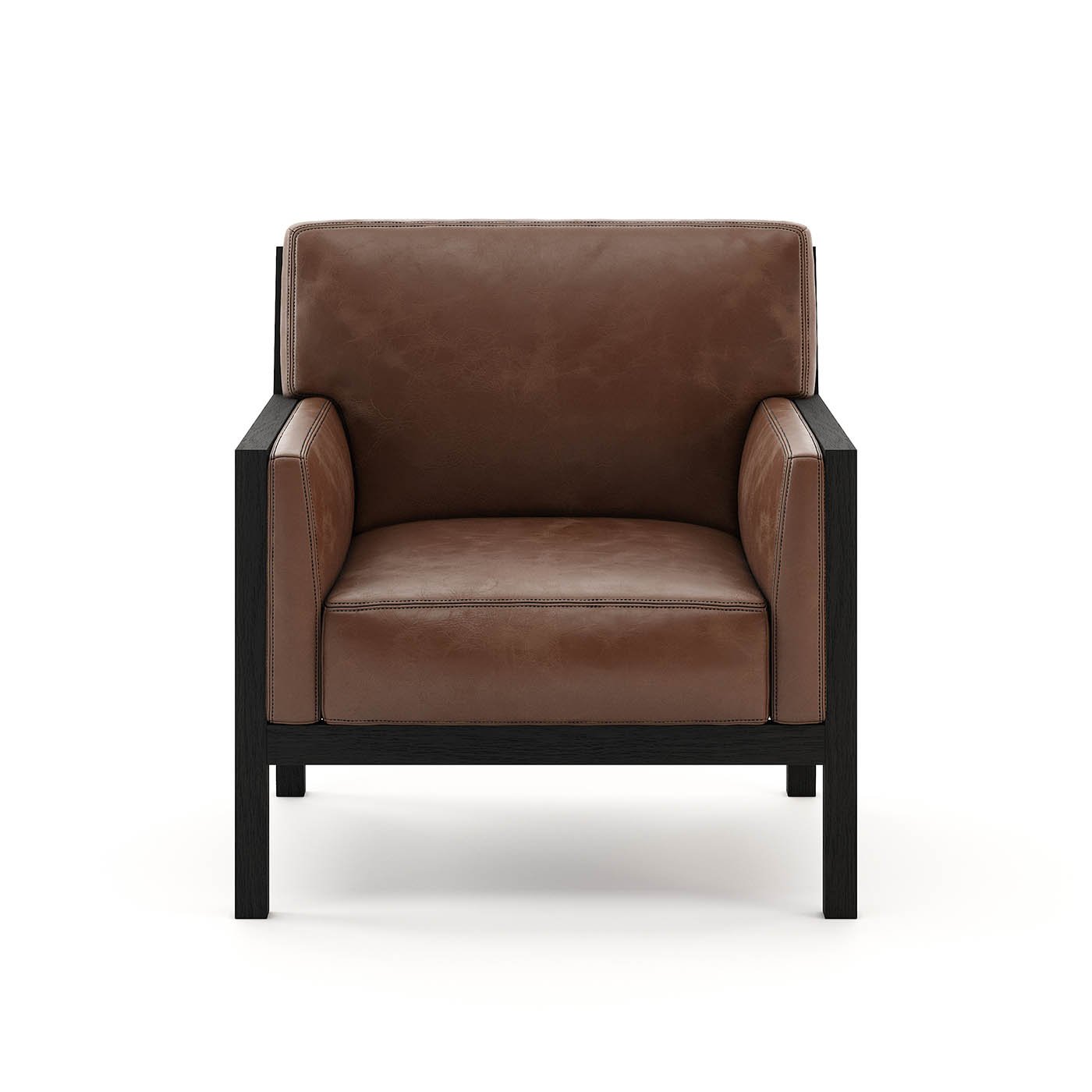 Винтажное мягкое кресло Cole в кожаной обивке с деревянной структурой. Благодаря спинке в стиле ретро и высокому подлокотнику, необходимый комфорт обеспечен.
