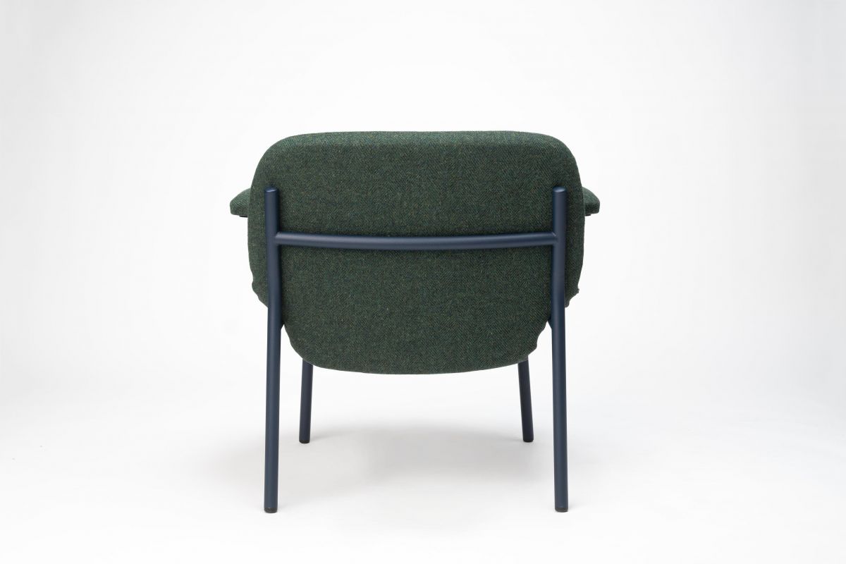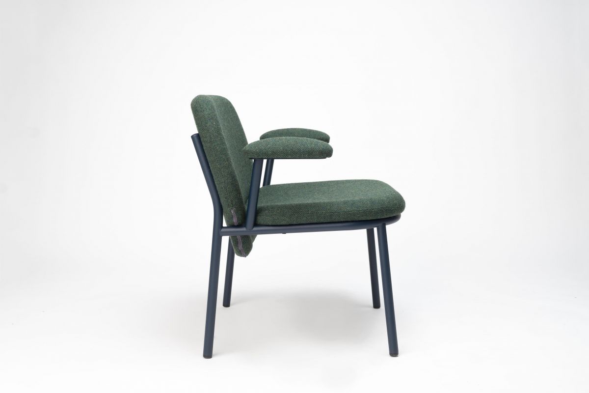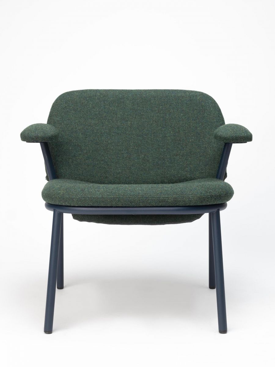 Стальное шерстяное кресло, форма его спинки играет с объемами и пересекается со структурой, придавая ему уникальный и особый вид. В индивидуальном исполнении, с подлокотниками или без, с высокой или низкой спинкой, с множеством покрытий и эпоксидной смолы. Этот продукт теперь доступен в 11 вариантах культовой обивки из твида Harris, материала ручной работы с использованием местной натуральной шерсти и натуральных красителей, который полностью производится на острове Харрис (Шотландия).