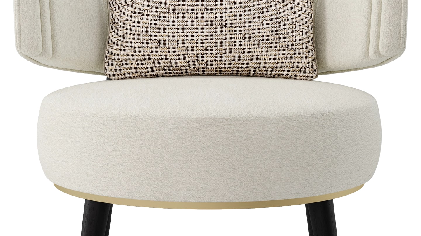 Изящное кресло LUCERNE с изящно скроенным сиденьем и ножками из темного дерева подходит для самых разных помещений, от гостиных до спален, в то время как многослойная крылатая спинка придает ему щегольства.