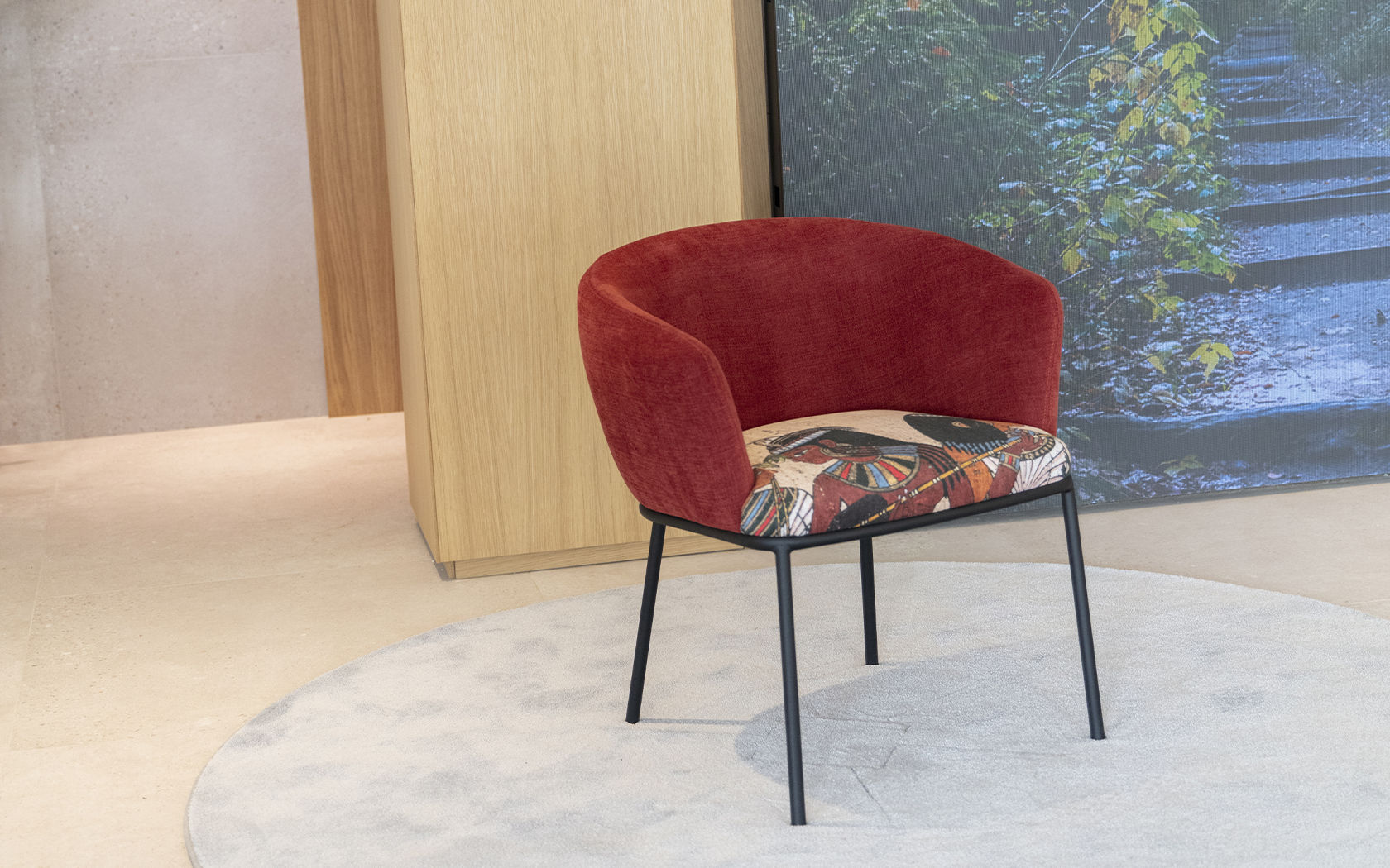 Scarlett — кресло с мягкой обивкой больших размеров, обволакивающего дизайна и очень удобным сиденьем. Благодаря своим изогнутым формам он создает силуэт, обеспечивающий удобную позу. Он контрастирует с легкостью металлической ножки, что придает нотку современности. В качестве обеденного стула он продлит время после ужина, где вы сможете насладиться комфортом. А если вы выберете его в качестве дополнительного кресла, оно поможет вам создать в доме особые уголки, ориентированные на отдых.