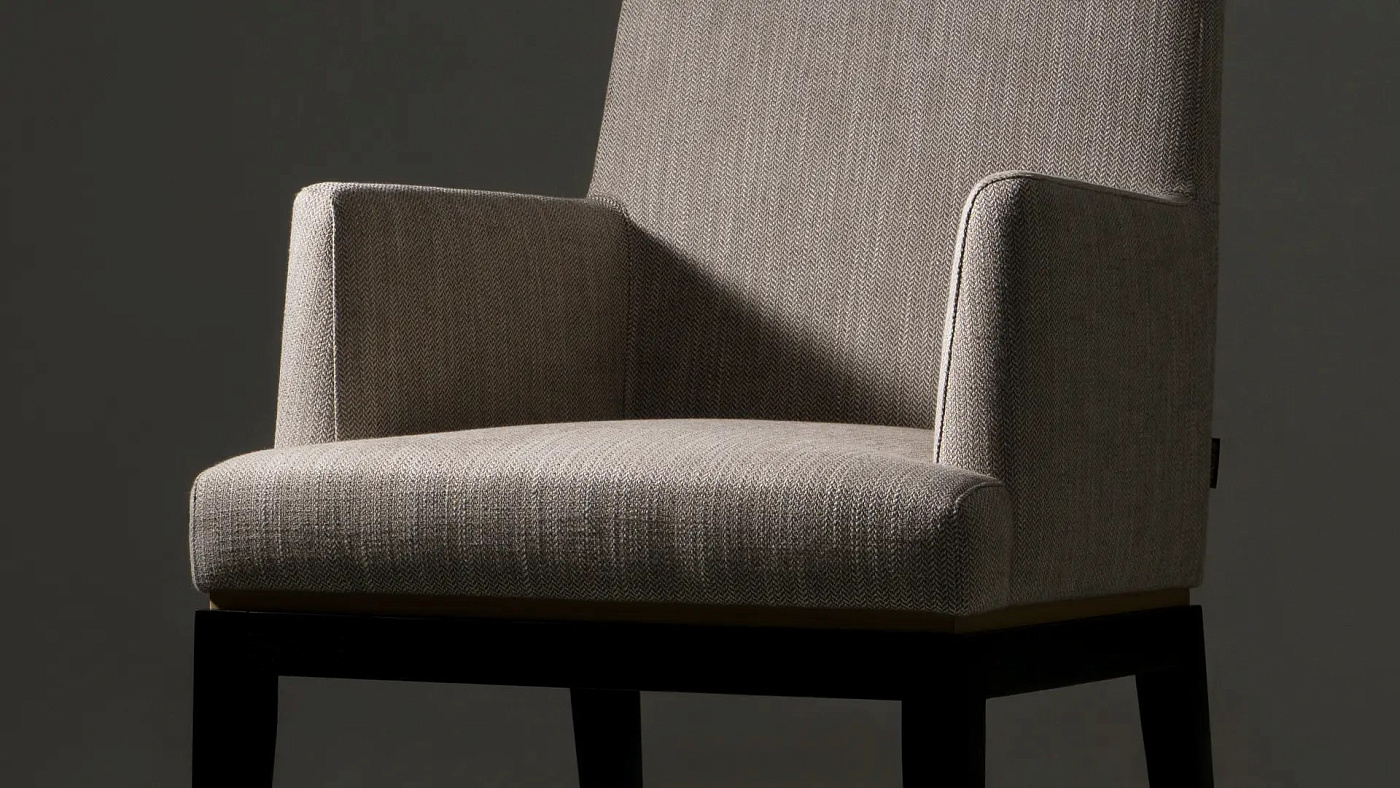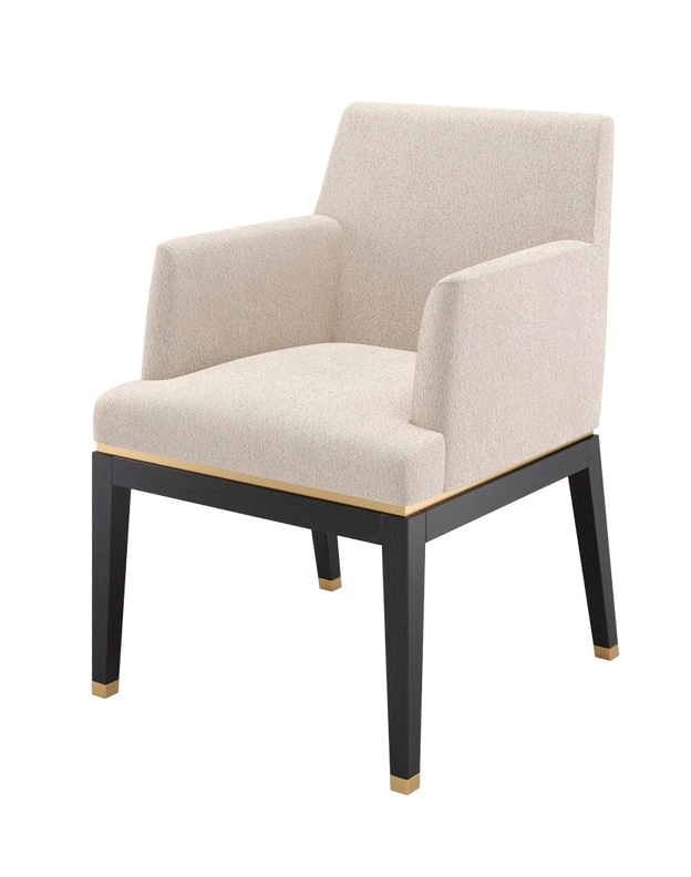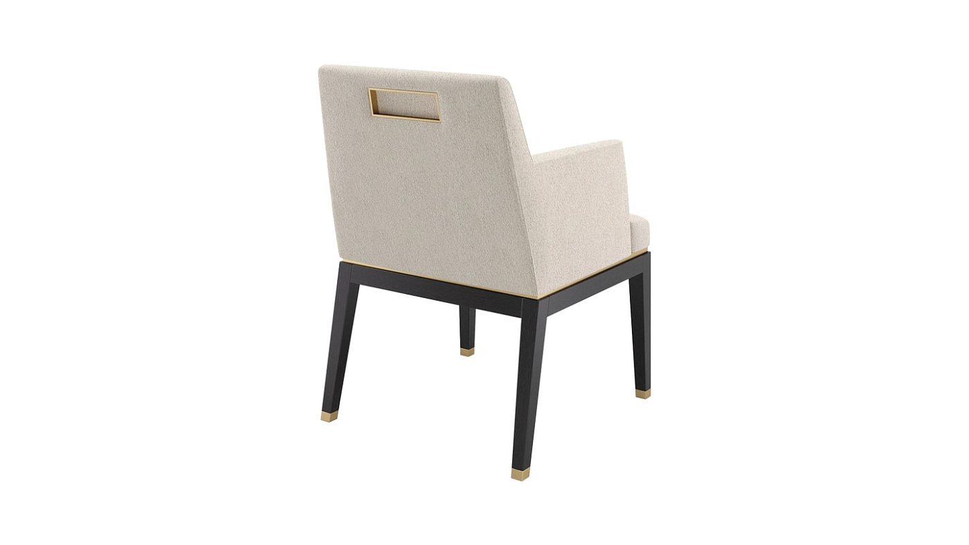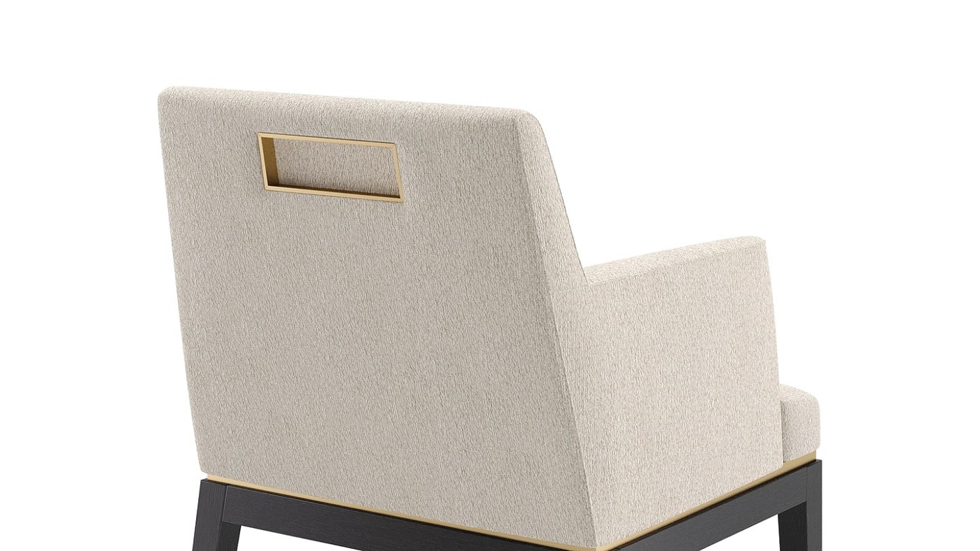 Элегантное кресло BAHRU II, спроектированное с учетом комфорта, имеет мягкое сиденье с мягкой обивкой, которое прекрасно контрастирует с тонкими вставками из матовой латуни и прочным основанием из цельного дерева.