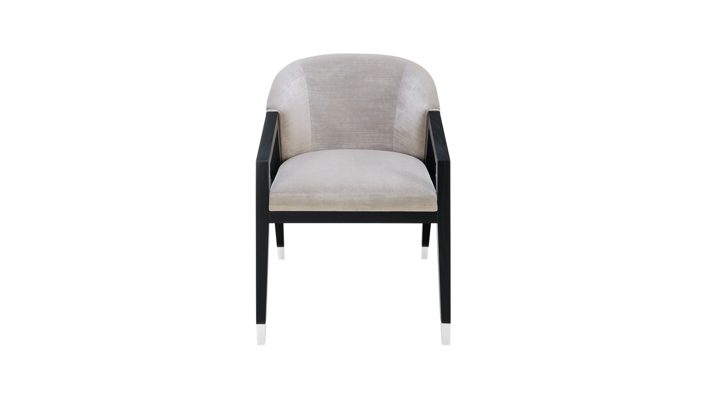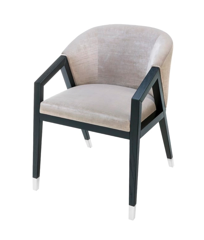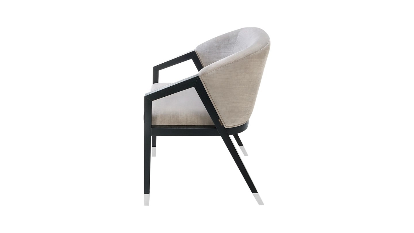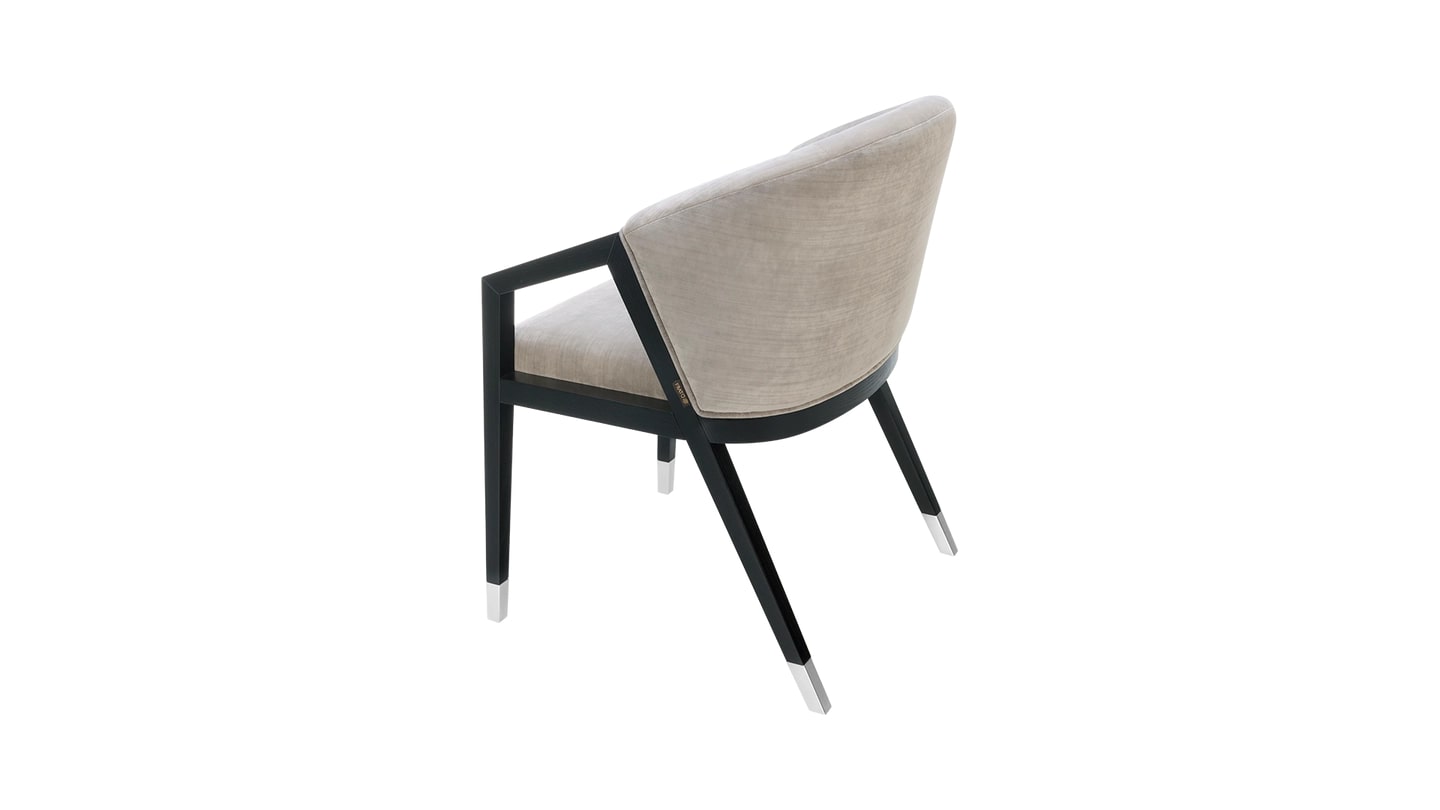 Обеденное кресло BORNEO с щедро закругленной спинкой мягко поддерживает сидящего, обеспечивая ему высочайший уровень комфорта. Изящные наклонные подлокотники и угловатые ножки выполнены из цельного дерева и отделаны крышкой из нержавеющей стали.