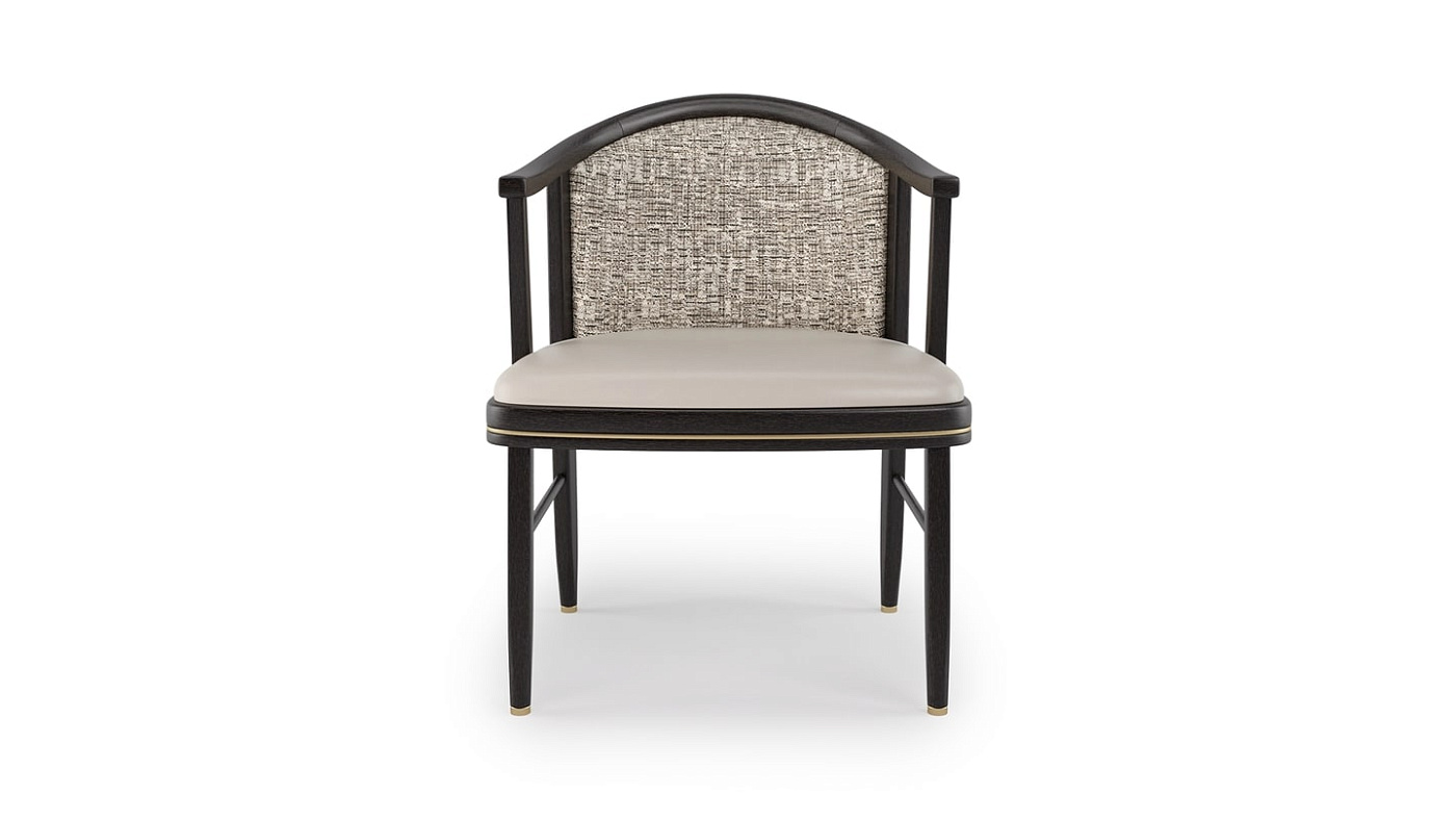 Первое, что бросается в глаза в потрясающем обеденном кресле FUJI, - это его свободный силуэт, эффектно очерченный темным массивом дерева. Это безупречно обрамляет различные обивочные ткани, в то время как акценты из тонкой матовой латуни завершают образ.
