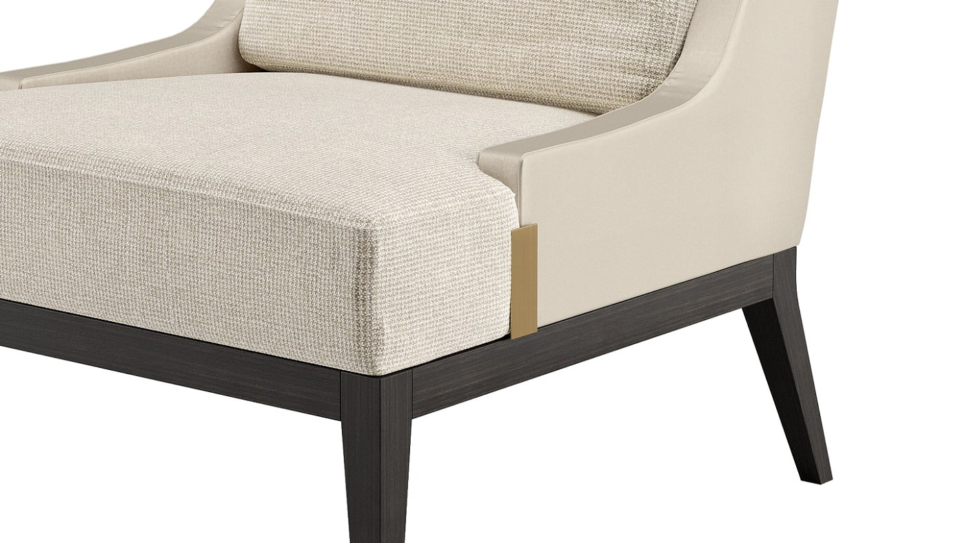 Обратите внимание, что подушки сиденья кресла BRERA, обитые тканью, и обтянутая атласом спинка соединены прямоугольником из матовой латуни? Именно такие тонкие детали, как эта, отличают дизайн FRATO от других.