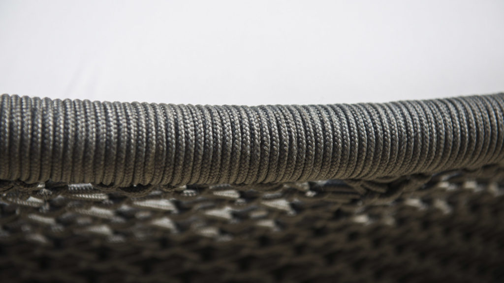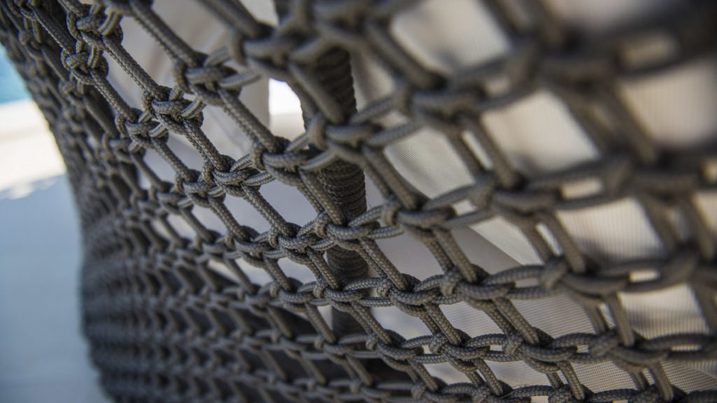 Характерное плетение этой коллекции придаёт ей лёгкость, в то время как извилистые алюминиевые конструкции придают изделиям прочность и долговечность. Антрацитовый шнур и тёмное порошковое покрытие делают коллекцию универсальной, позволяя идеально вписываться в любое пространство