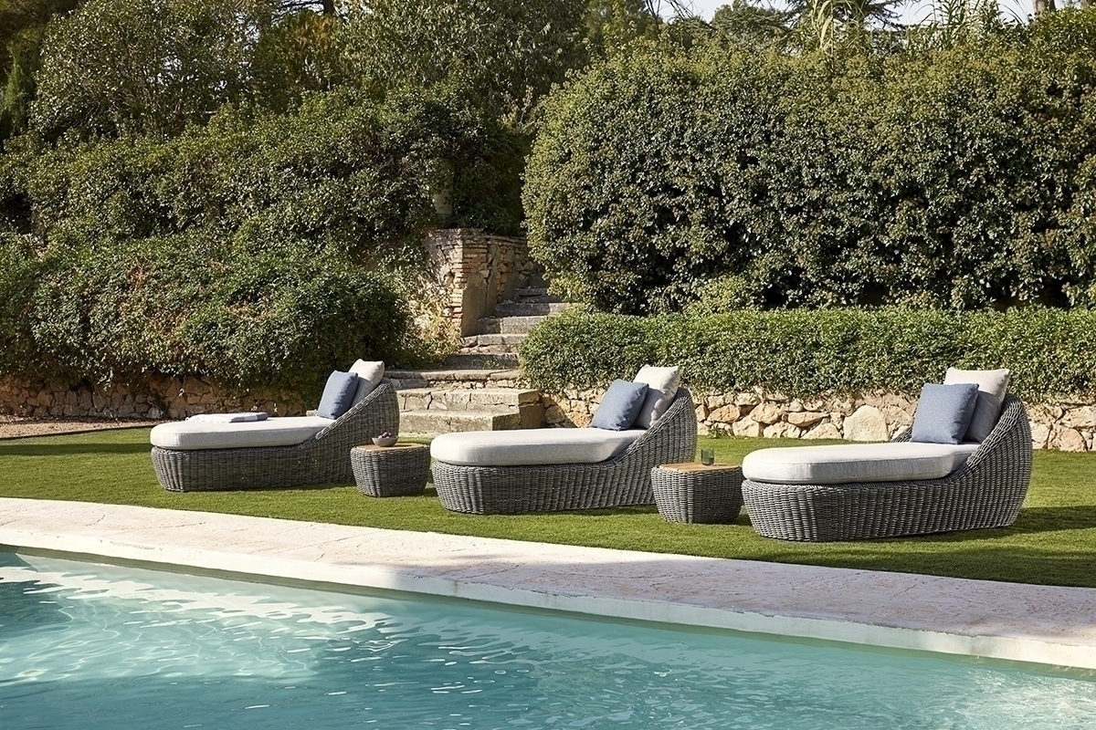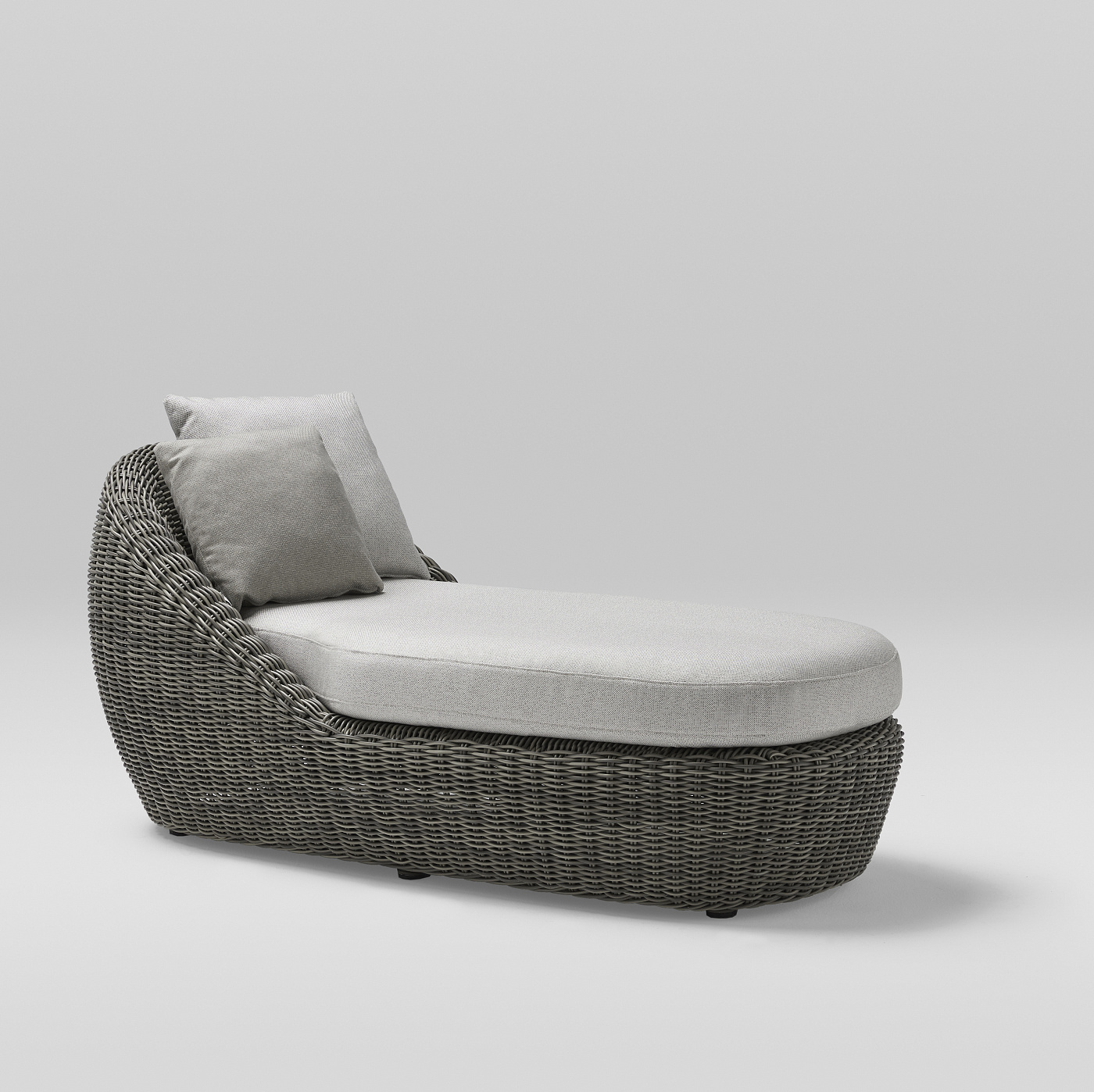 Уличная кровать. Структура из лакированного алюминия, оплетенная 6-миллиметровым волокном Shintotex® Round в двух вариантах отделки: коричневый мох или пепельно-серый. Подушка сиденья из высокопрочного пенополиуретана 35 кг. Вы можете выбрать ткань для чехлов на подушки из опций тканей при настройке продукта на веб-сайте. Вы также можете купить подушки без ткани или с собственной тканью.