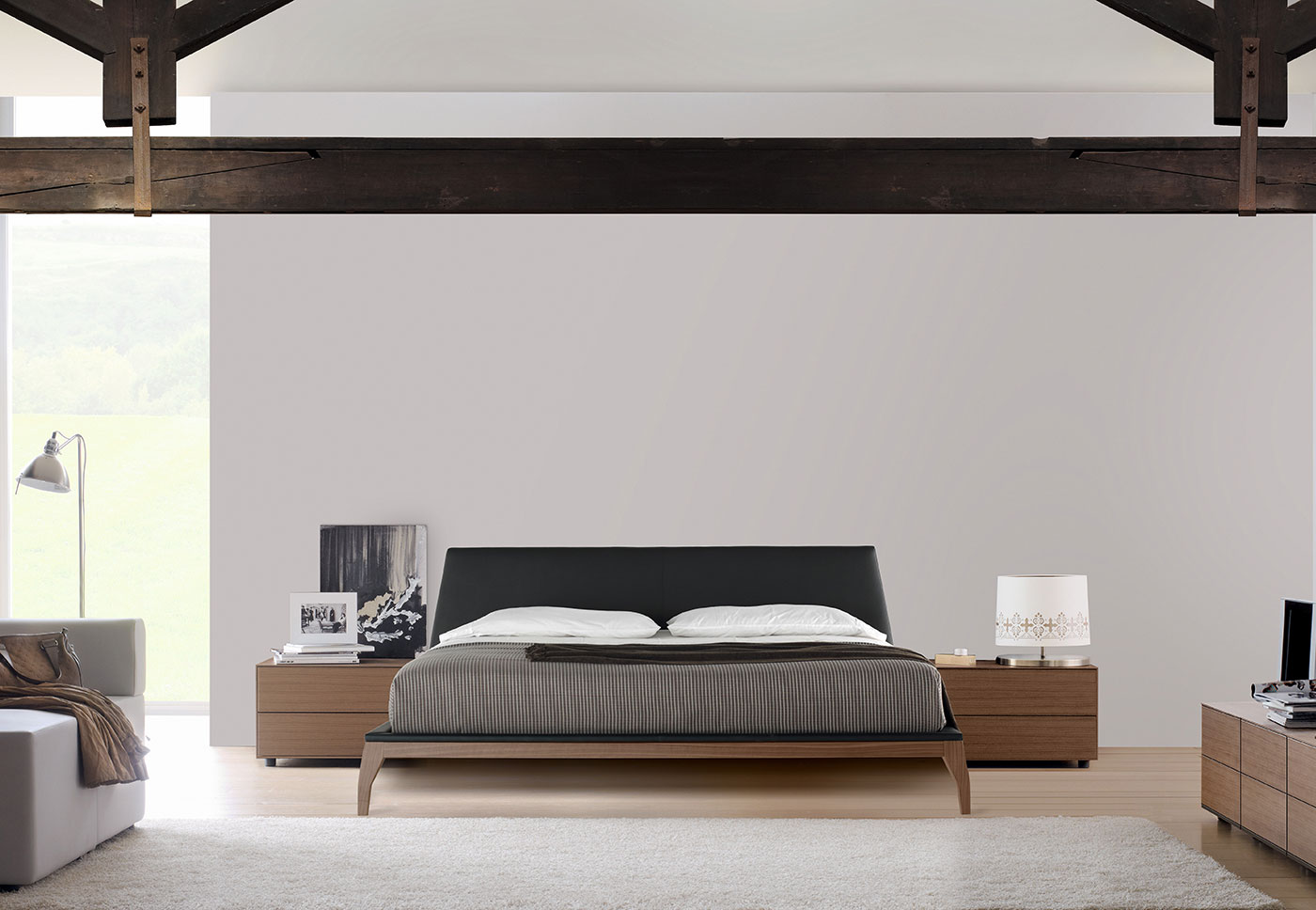 Кровать Bel - это столярное изделие, почти скульптурное. Конструкция из массива дерева обеспечивает необходимую жесткость, а мягкое изголовье обеспечивает удобное положение для чтения. И изголовье, и верхняя часть конструкции могут быть обиты любой из наших тканей или шкур. Модель дополнена коллекцией прикроватных тумбочек Treku.