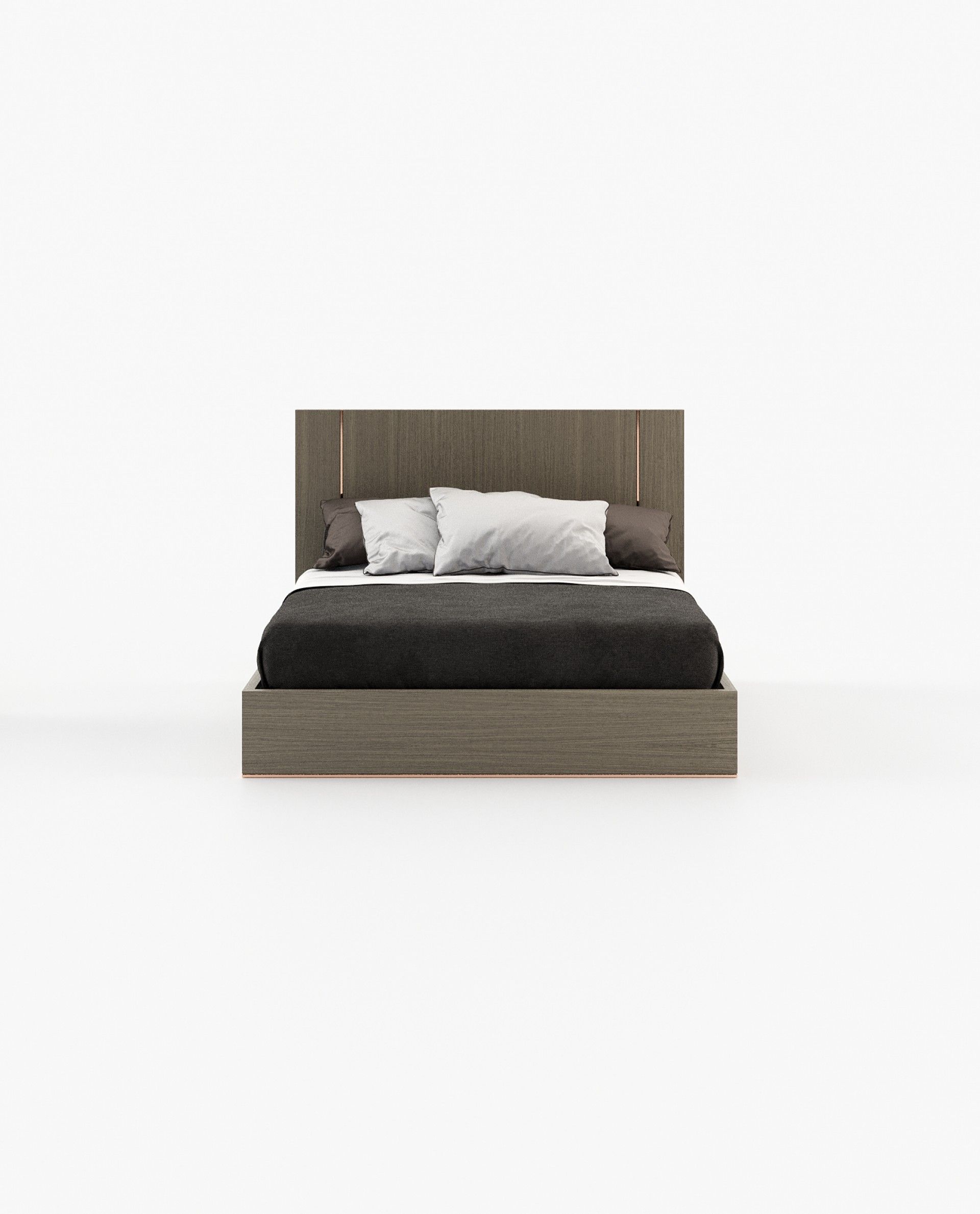 Деревянная кровать Duane с металлическими вставками, где правят прямые линии и квадратные углы. Современный и чистый дизайн для декора вашей спальни.