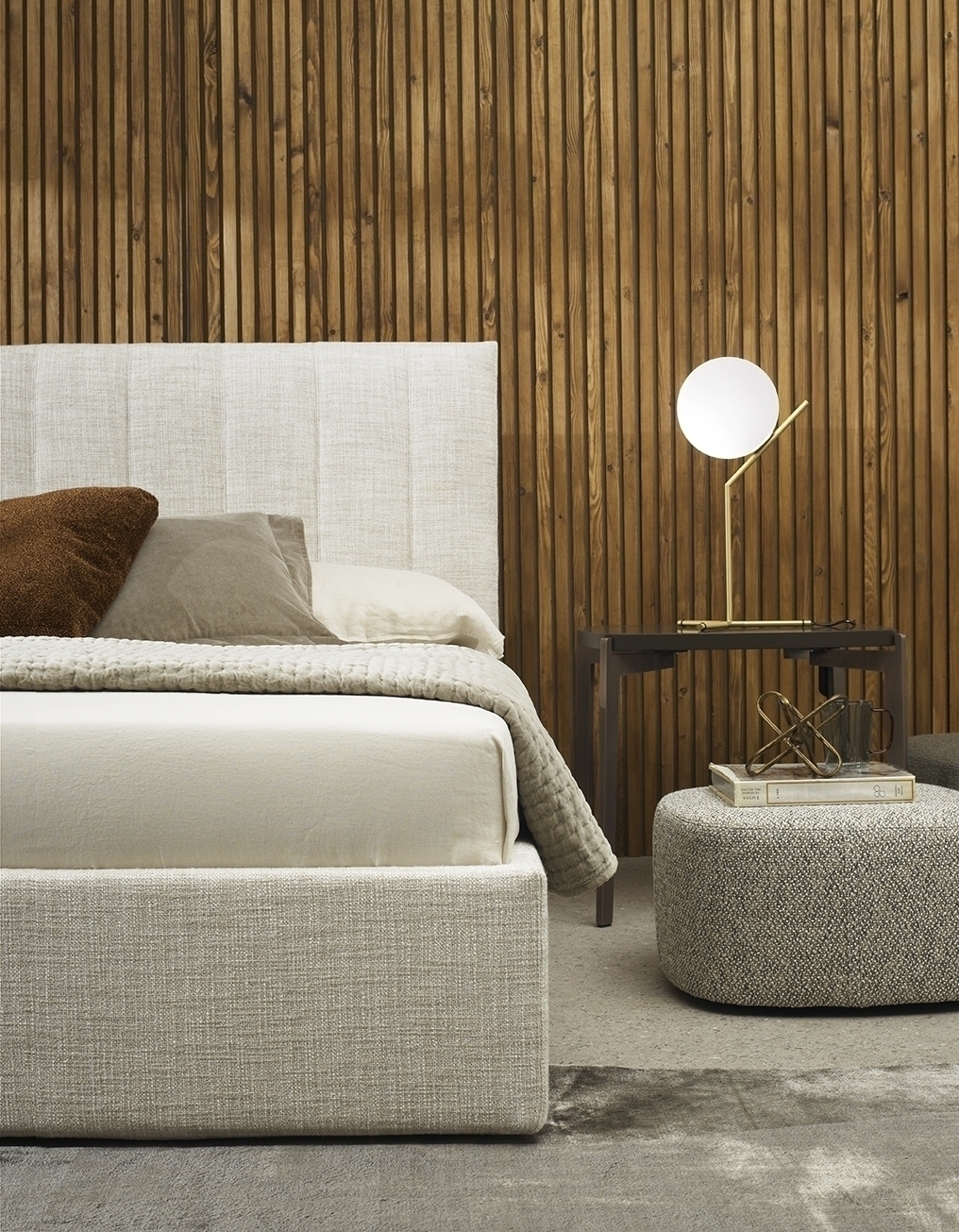 Dalia - это стилизованная кровать, тонкая и стильная, с вертикальными линиями, обозначающими волнистую обивку изголовья и подчеркивающими чувственный комфорт. Мастерство во всей красе проявляется в тщательной проработке деталей отделки изголовья, классической, элегантной и современной. Преимущества узкого изголовья и каркасного обрамления очевидны в условиях ограниченного пространства. Доступны различные размеры для адаптации ко всем матрасам, включая внутреннюю систему регулировки высоты и прикроватный столик.