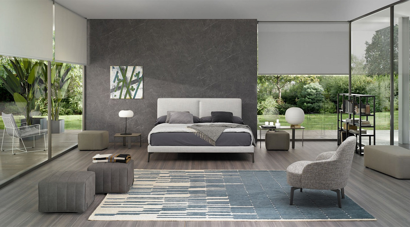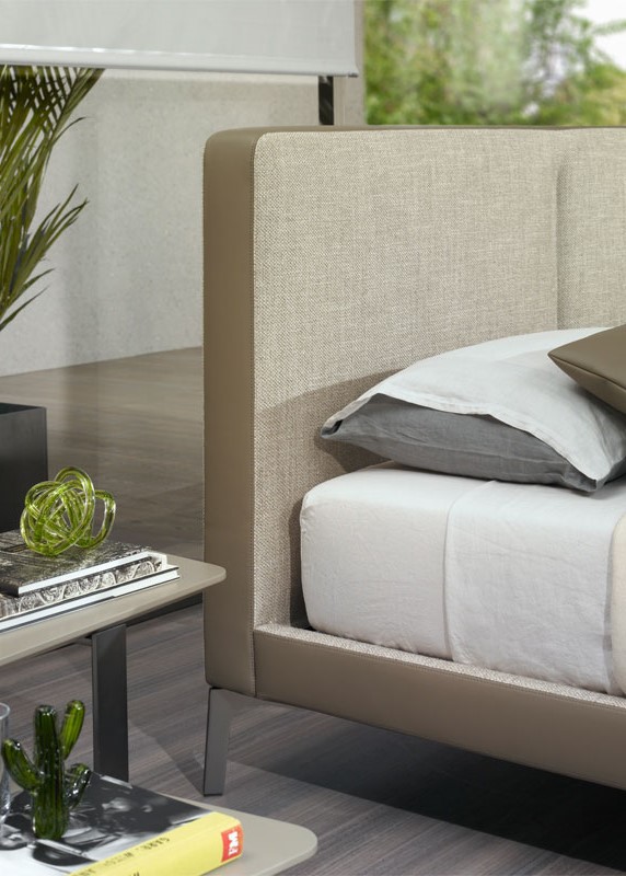 Erin задумана как кровать простого базового дизайна, без лишних элементов и изысканности. Единственная деталь вертикальной строчки в центре изголовья придает характер и богатство его индивидуальности. Тонкость изголовья и рамы позволяет легко адаптировать кровать к ограниченным пространствам с ограниченными размерами. Эта коллекция состоит из двух вариантов; полностью мягкая кровать из одной ткани или вторая версия, в которой выбранный цвет искусственной кожи на внешней полосе сочетается с выбранной тканью. Элегантность ножек придает модели легкость, подчеркивающую ее характер. Высокое изголовье более одного метра позволяет использовать матрасы толще тридцати сантиметров без ущерба для общей эстетики.