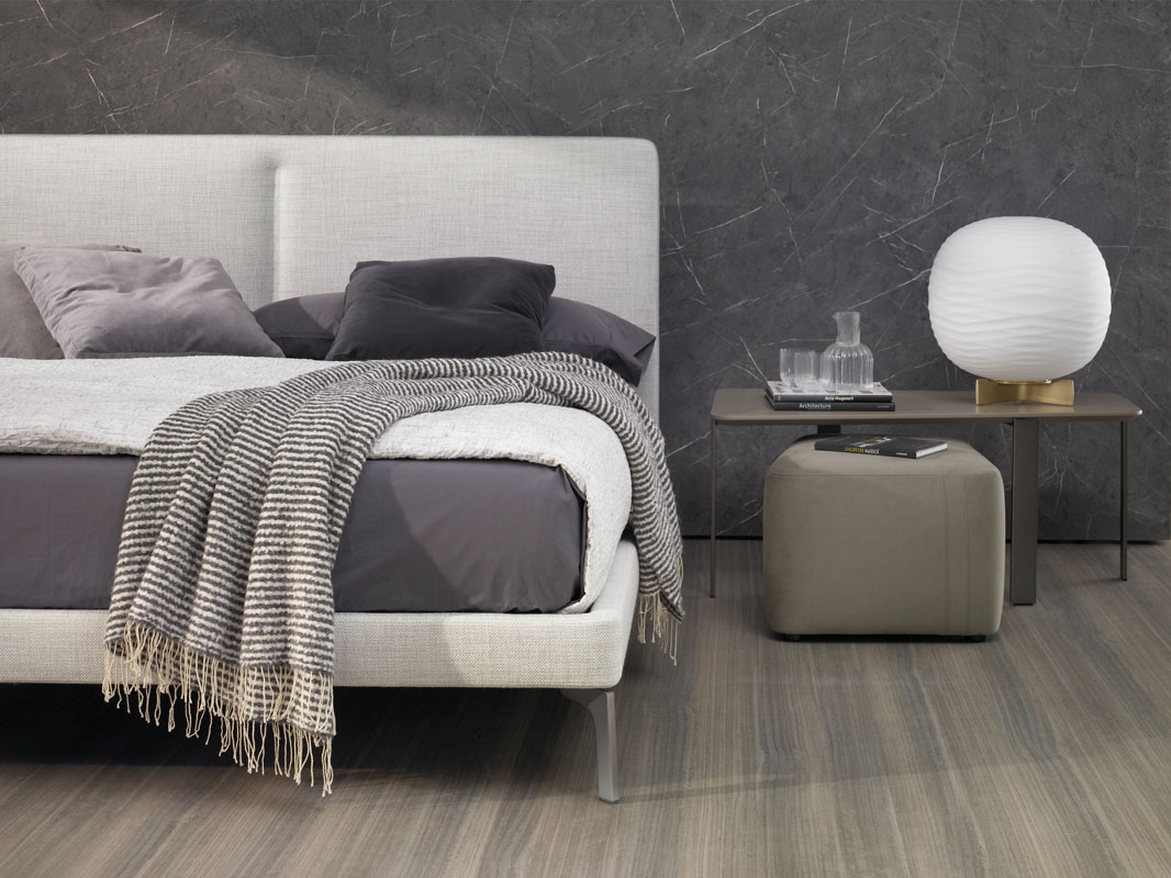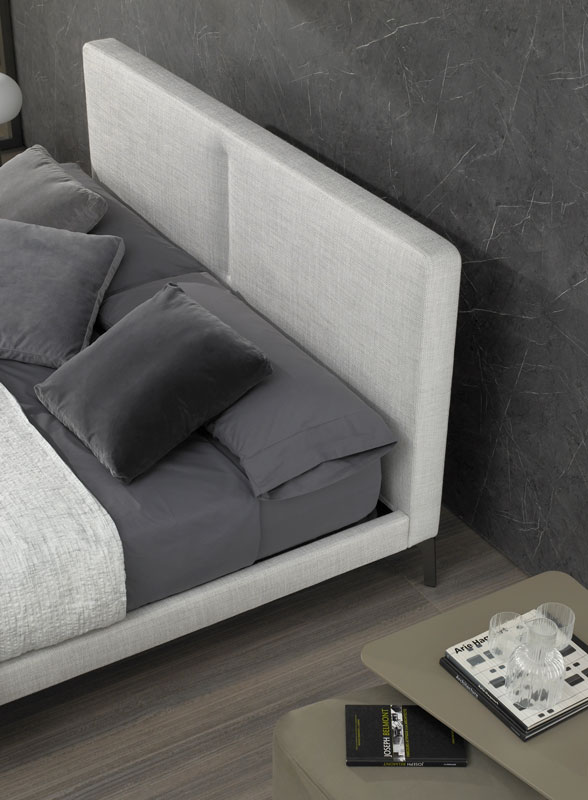 Кровать Erin задумана как кровать с простым базовым дизайном, в котором отсутствуют лишние элементы или изысканность. Единственная деталь в виде вертикальной прострочки в центре изголовья придает кровати характер и богатство. Благодаря тонкому изголовью и каркасу кровать легко приспосабливается к небольшим пространствам с ограниченными габаритами. Эта коллекция состоит из двух вариантов: полностью обитой кровати из одной ткани или второго варианта, в котором выбранный цвет искусственной кожи на внешней обивке сочетается с выбранной тканью. Элегантность ножек придает кровати легкий внешний вид, подчеркивающий ее характер. Высота изголовья - один метр с лишним - позволяет использовать матрасы толщиной более тридцати сантиметров без ущерба для общей эстетики