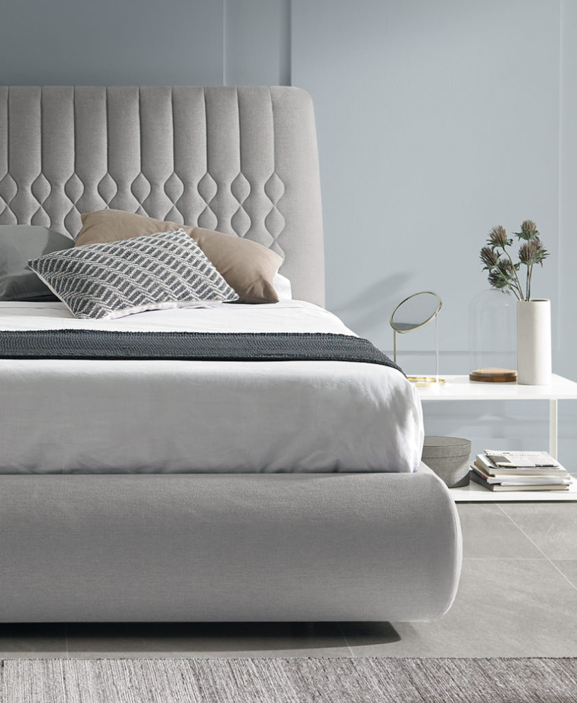 Напоминая классические формы, шитье на изголовье кровати Geo создает элегантные формы, утонченные, но полные индивидуальности. Это переосмысление прошлого с использованием современного языка, что делает дизайн универсальным элементом для разных помещений.