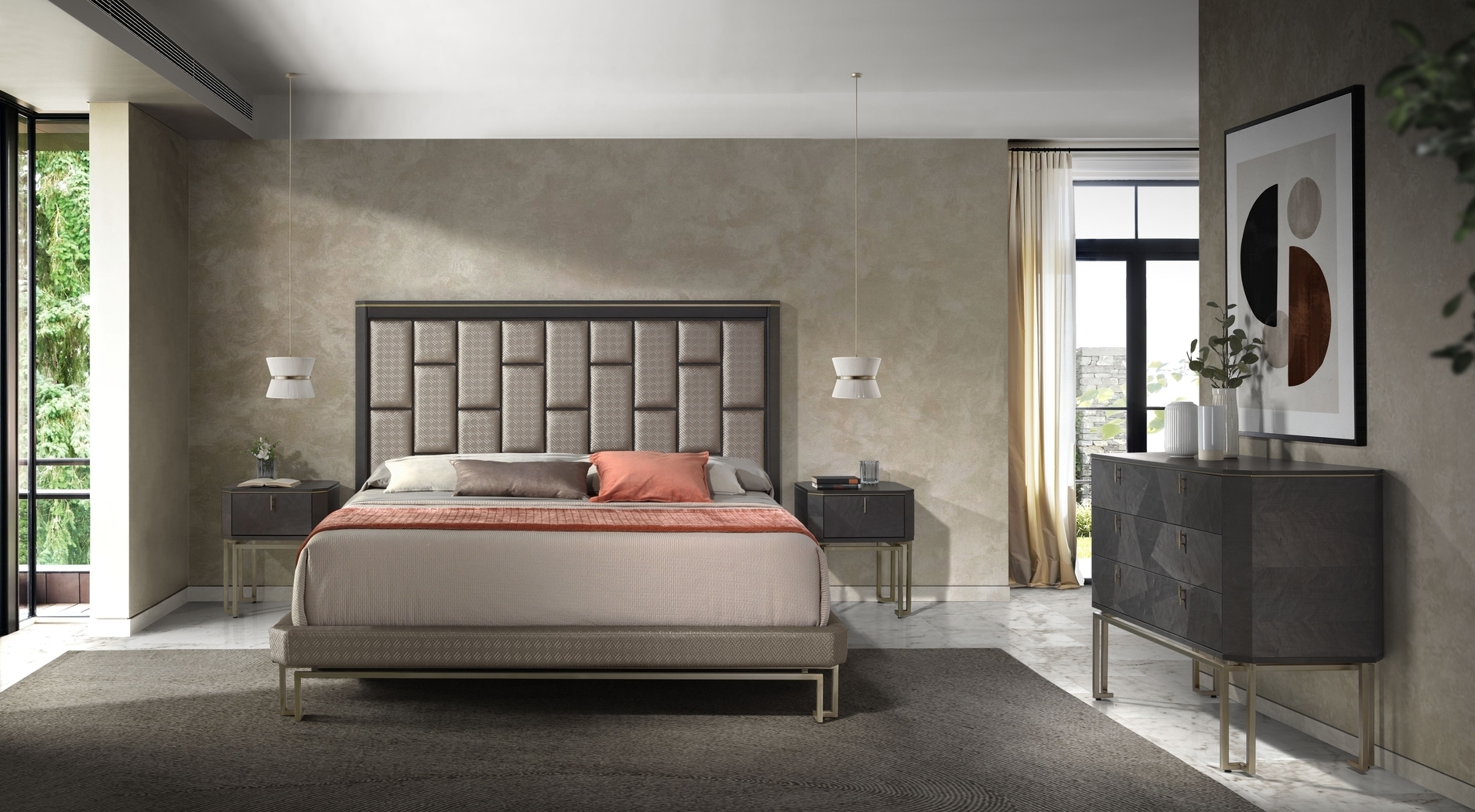 Спальня Bond привлекает внимание геометрическими деталями и элегантным дизайном. Изголовье, обитое премиальной тканью Hurtado, дополнено основанием из лучшего дерева и металлическим основанием с переплетением. Кровать Bond из коллекции Evolution доступна в разных размерах и вариантах отделки.