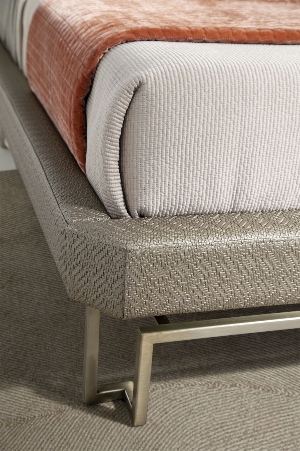 Спальня Bond привлекает внимание геометрическими деталями и элегантным дизайном. Изголовье, обитое премиальной тканью Hurtado, дополнено основанием из лучшего дерева и металлическим основанием с переплетением. Кровать Bond из коллекции Evolution доступна в разных размерах и вариантах отделки.