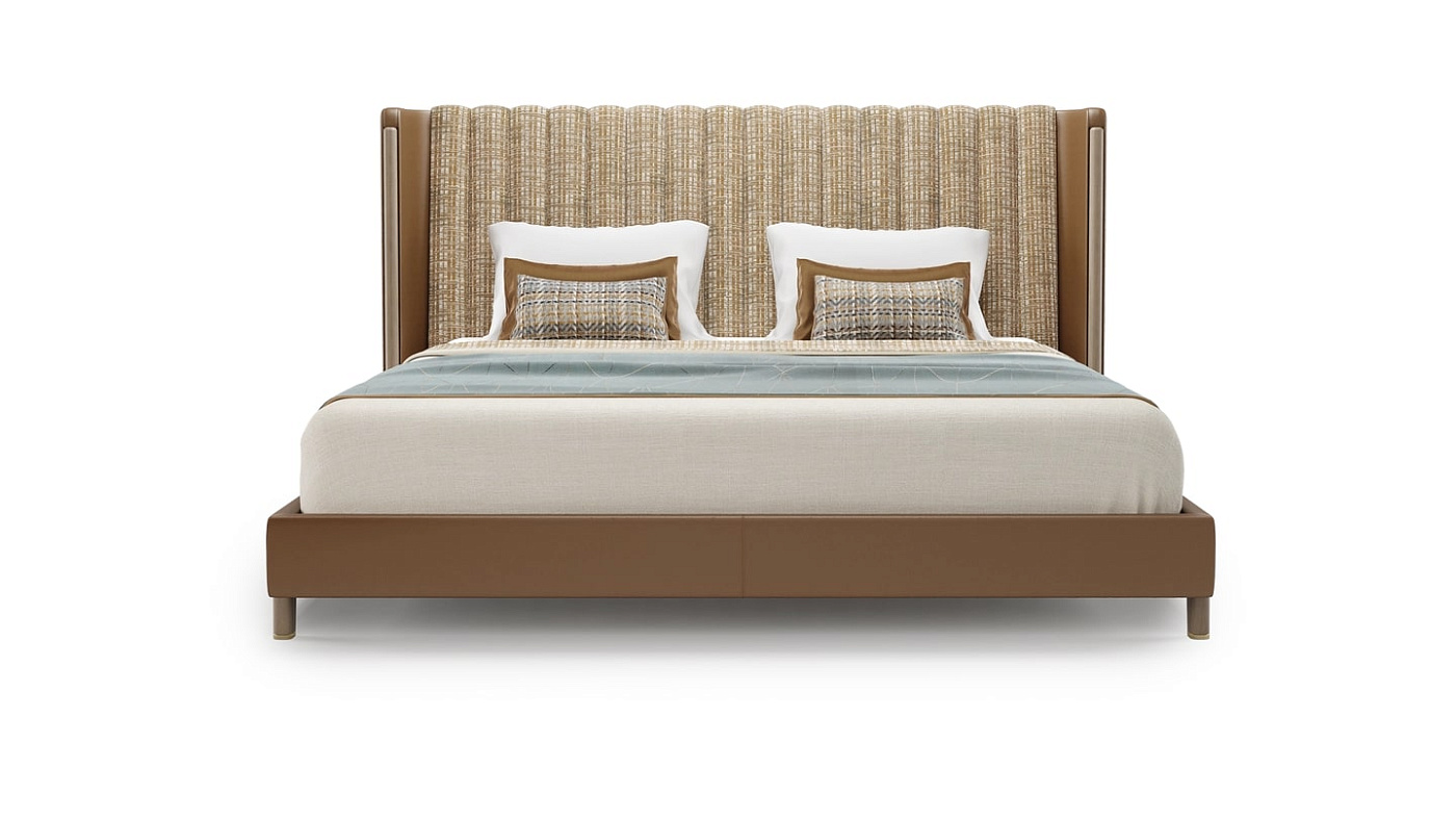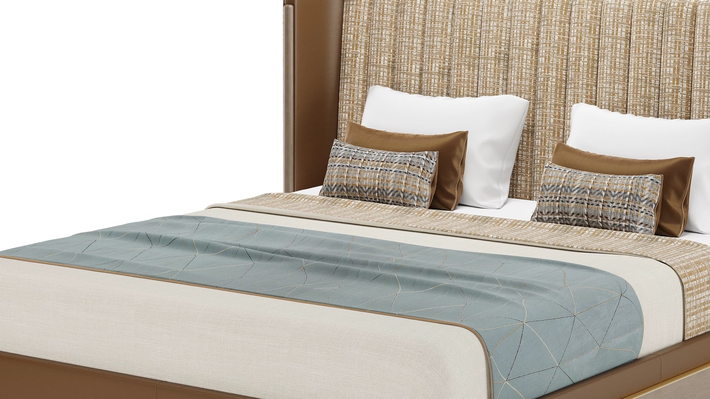 Привнесите в свою спальню немного роскоши в гостиничном стиле с помощью изысканной раздельной кровати, которая привлекает внимание своим идеально подобранным изголовьем. Обтянутое тканью с вертикальными швами изголовье кровати, подчеркивающее ее высоту, прекрасно контрастирует с минималистичным дизайном из массива дерева и основанием из матового стекла.