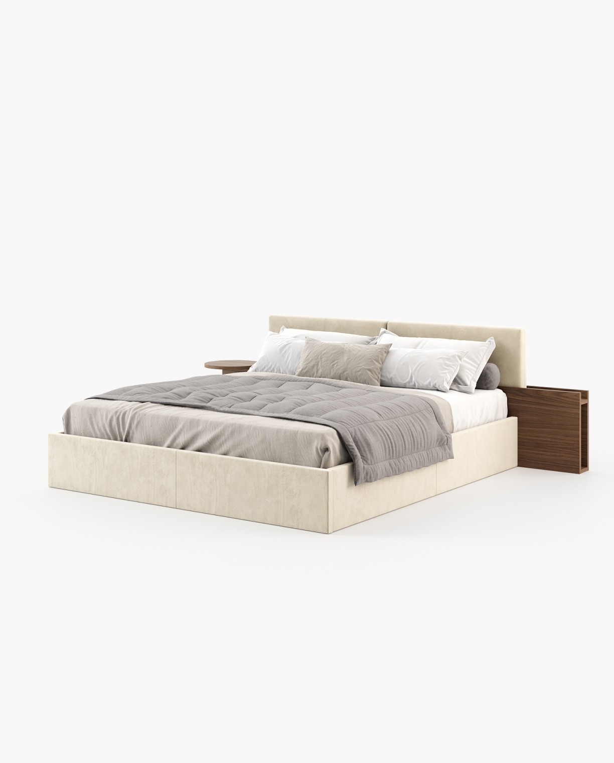 Откройте для себя Thalia, простую кровать, которая сочетает в себе красоту и функциональность, со встроенными прикроватными тумбочками из деревянного шпона для целостного и элегантного вида. Идеально подходит для создания уютной и возвышенной атмосферы, эта кровать органично сочетает простоту с изысканностью, улучшая любой декор спальни.