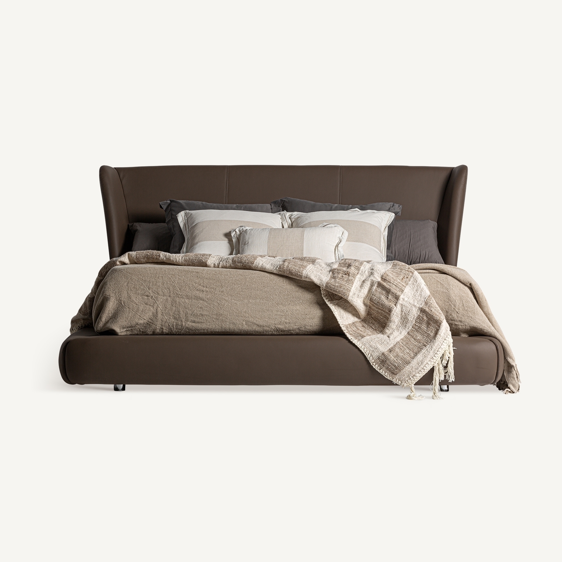 VICAL переосмысливает современную сдержанную элегантность в модели кровати Wayne. Обитая коричневой кожей и сочетающая сосновую древесину и пенополиуретан, эта разборная кровать выделяется своей структурной элегантностью и обволакивающим комфортом. Идеально подходит для спален в мужском стиле. Ширина: 196 см, Глубина: 218 см, Высота: 102 см