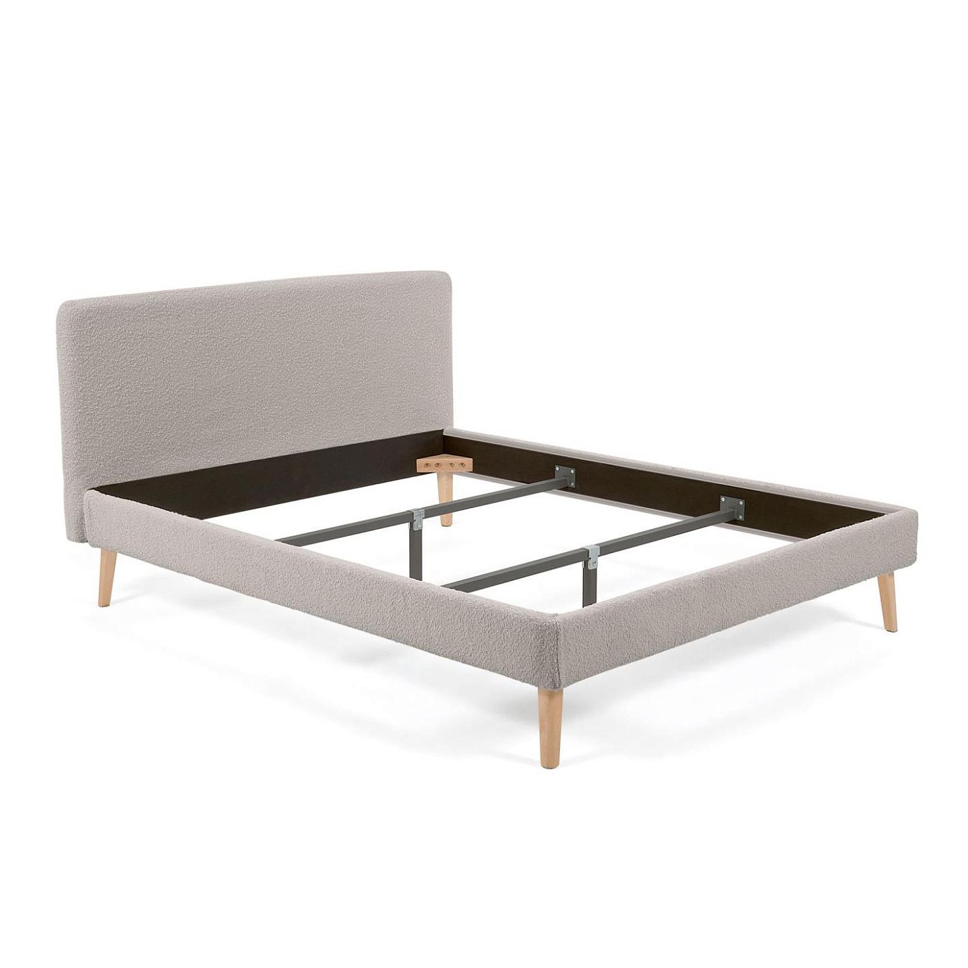 Кровать Lydia из светло-серой ткани букле на ножках из массива бука 160 x 200 см