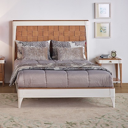 Модель примечательна высоким, рельефным изголовьем, выполненным из ценной древесины, рисунок которой удачно подчёркивает контрастная белая окантовка. Португальские дизайнеры вдохнули в классику новую энергию, которая послужит оберегом для ваших снов.