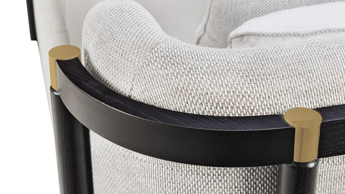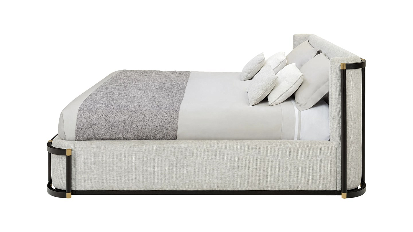 Кровать smart COMO сочетает мягкую льняную обивку с декоративным архитектурным каркасом, который находится в изножье и в изголовье кровати. Он изготовлен из смеси массива дерева с элементами из блестящей матовой латуни.