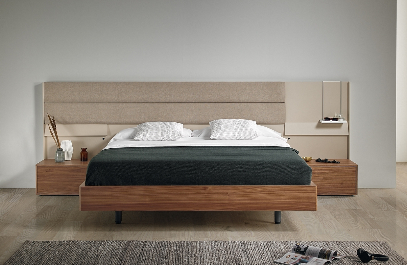 Интана — это архитектурное упражнение, способное создать универсальную, организованную композиционную систему, которая работает благодаря перекрытию различных слоев. Эта фасадная система с двумя вертикальными частями представляет собой асимметричное мягкое изголовье с подвесным лотком, который является не только опорой, но и полезен для хранения различных предметов повседневного обихода. Кроме того, на обоих концах есть функциональные нижние зоны освещения, которые создают безмятежную атмосферу.