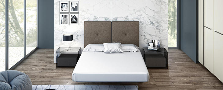 Матрас опирается на одну центральную ножку, что придает комбинации эффект легкости перышка и создает ощущение открытости и пространственности.Обитое изголовье кровати имеет центральную деревянную вставку, придающую комбинации согревающий эффект, необходимый каждой спальне. Без сомнения, одна из самых инновационных и современных в каталоге EMEDE в категории дизайнерских кроватей.