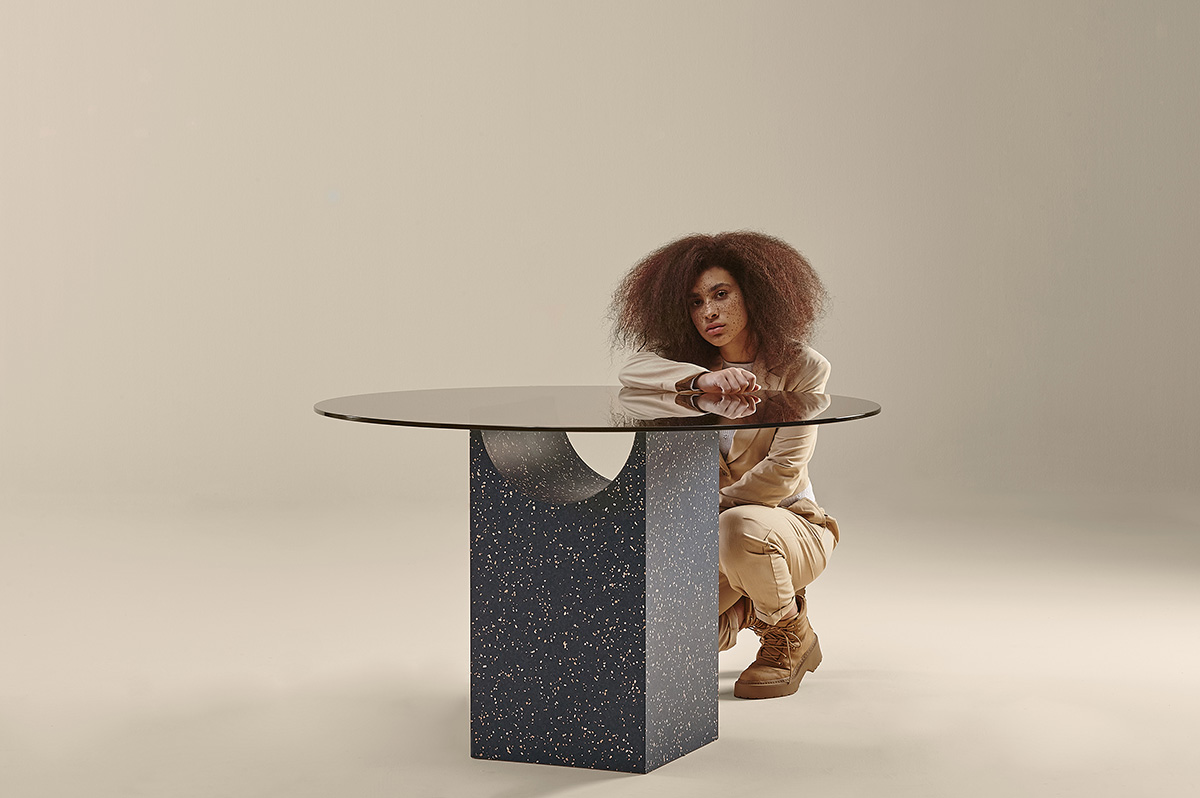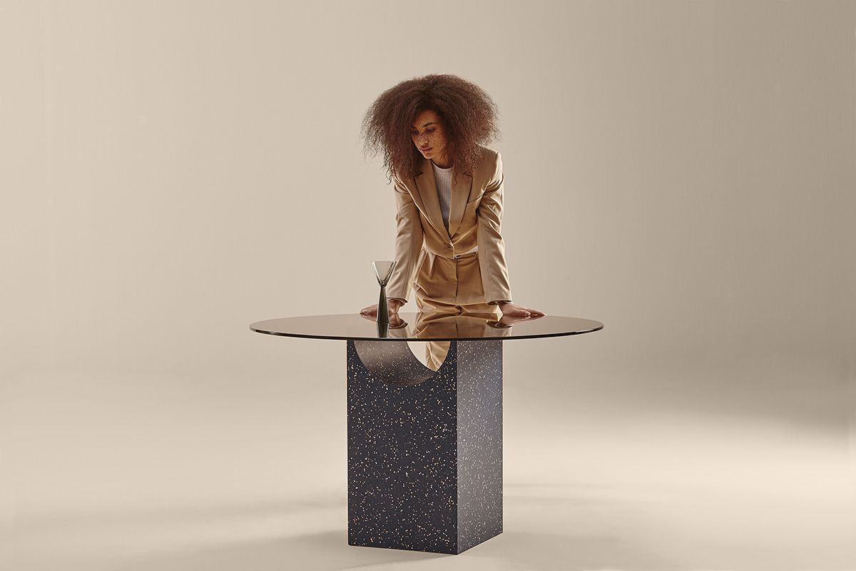 Течение времени-это элемент, который оставляет след прошлого, когда он лепит материю. Студия Note создала семейство столов, основания которых напоминают нам об архитектурных фигурах древних цивилизаций, разрушенных с течением времени. Это часть пустотной материи. Скульптурное основание образовано прямоугольным блоком, из верхней части которого вычитается цилиндрический участок. Верхняя часть из закаленного стекла деликатно опирается на тонкие линии, которые были обнажены пересечением обеих геометрических фигур. Честная эстетика, которая демонстрирует силу и красоту простыми способами. Основание является как структурным, так и эстетическим. Чтобы сочетаться с оттенками шампанского стеклянной столешницы, Note добавила совершенно новые пятна Menta, Lavanda и Calabaza для версии основания из ясеня, а также оставила наши классические цвета Nogal и Cerezo.