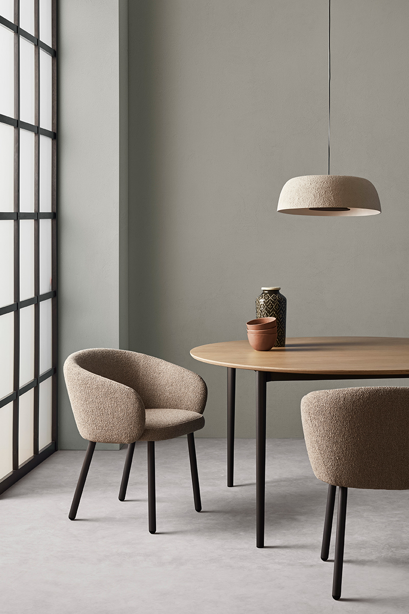 Круглый стол Nude indoor. Studio expormim. 2021. Конструкция изготовлена из трубы из нержавеющей стали, окрашенной полиэфирной порошковой краской. Коллекция доступна в версии из фанеры европейского дуба и в лакированной версии (МДФ). Толщина верха: 19 мм. Поставляется в разобранном виде.